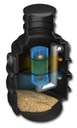 - wysokosprawny filtr koalescencyjny z zabudowanym pływakiem, który zamyka odpływ z urządzenia po przepełnieniu się substancjami ropopochodnymi. Filtr można swobodnie wyciągać na powierzchnię terenu, co ułatwia czyszczenie i eksploatację separatora