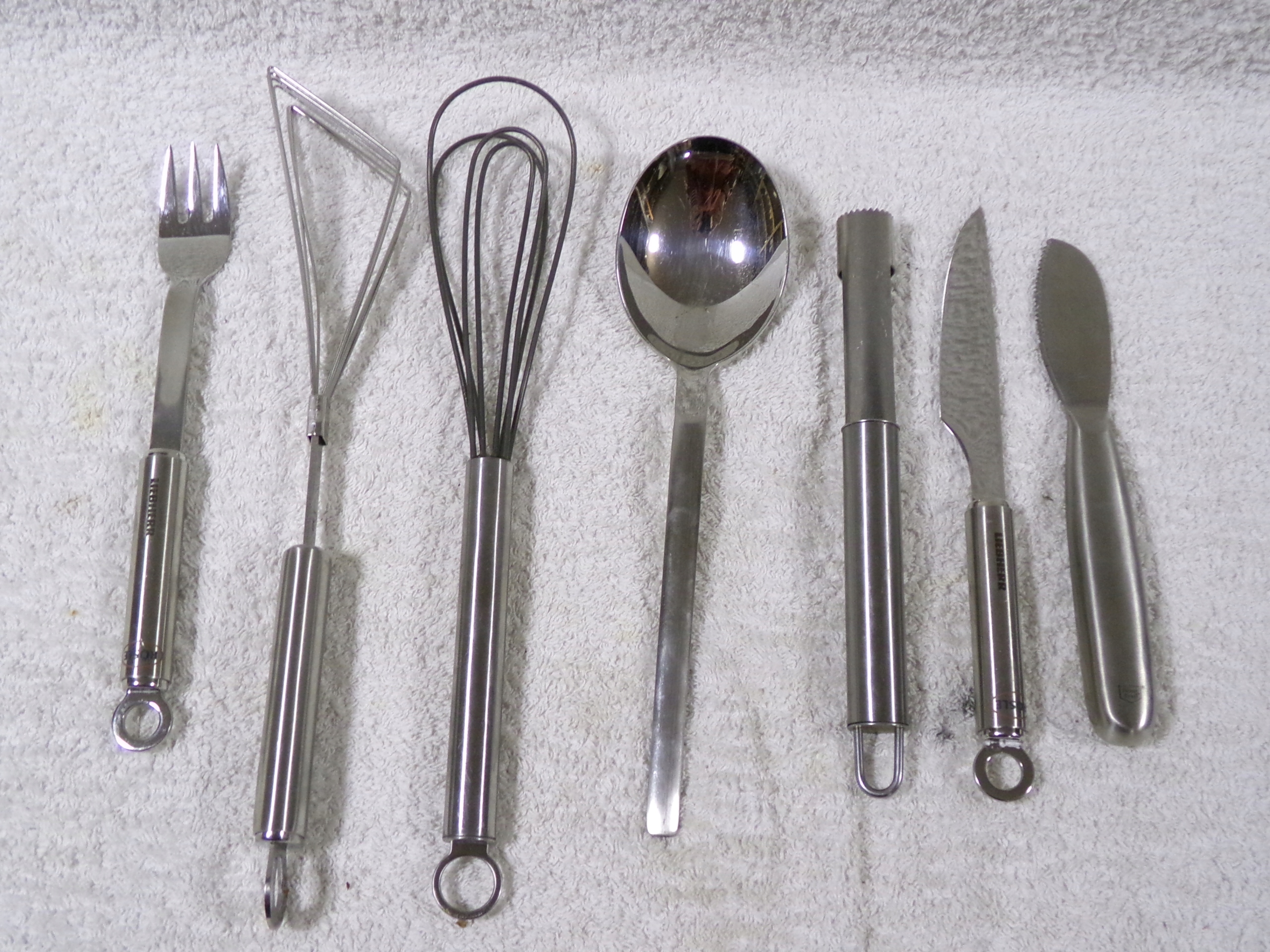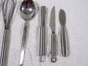 Zestaw różnych akcesoriów kuchennych ,przeważnie ze stali nierdzewnej .Stan zachowany bardzo dobry,bez uszkodzeń.