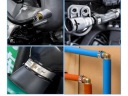 Zastosowanie zaokrąglonych krawędzi jest bezpieczne dla węży / przewodów i nie powoduje uszkodzeń zaciskanego przedmiotu.