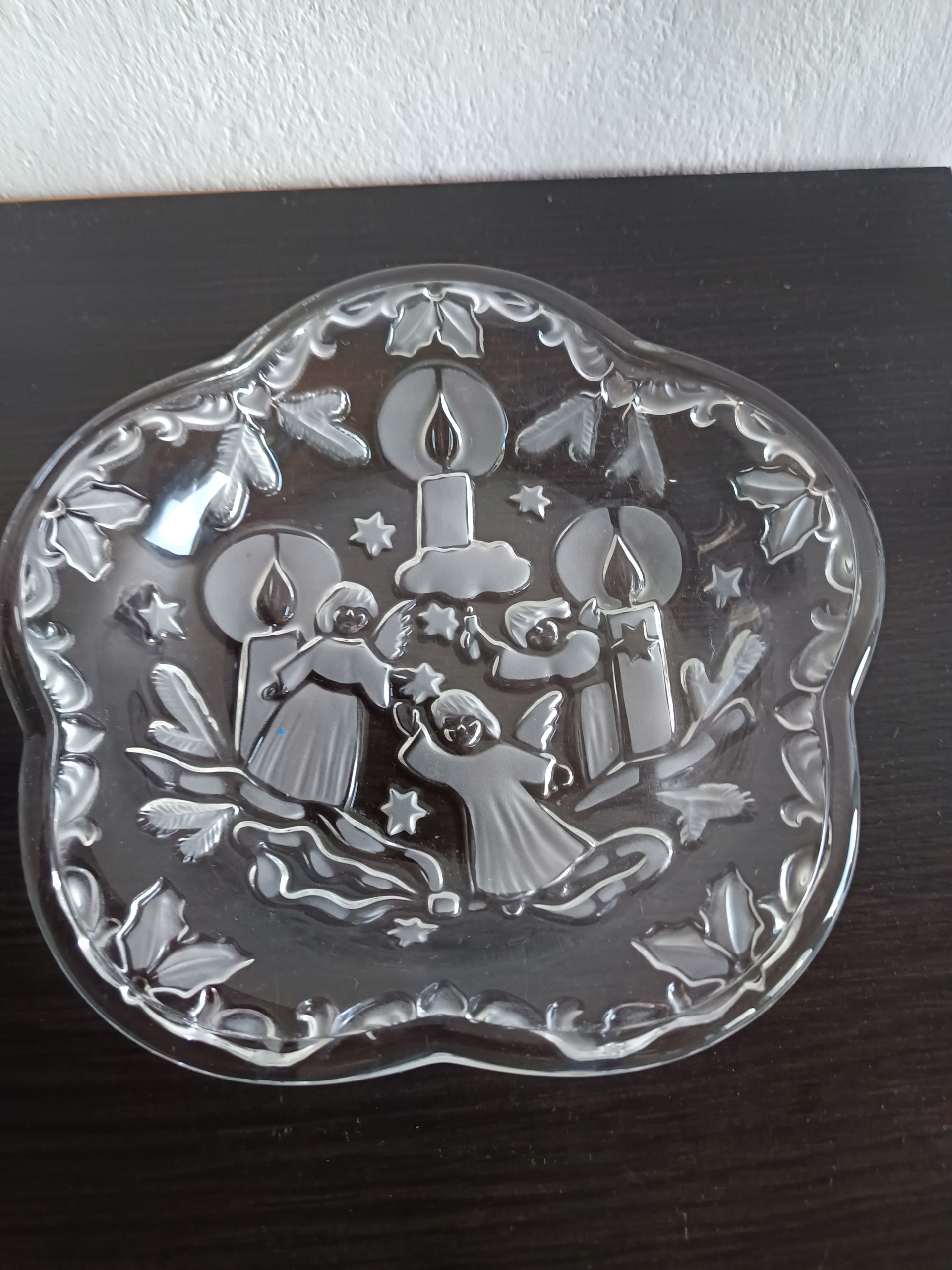 Szklana , świąteczna patera.