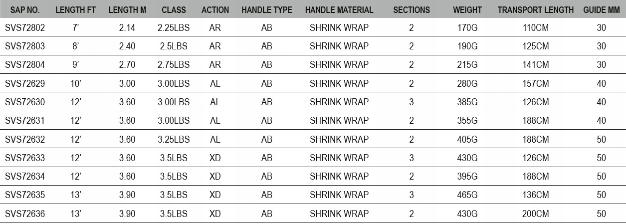 Wszystkie egzemplarze o długościach 12 i 13 stóp są uzbrojone w wydajne rzutowo, lekkie, wysokowydajne przelotki startowe MM-Series o średnicy 50mm, które są uzupełnione o antysplątaniową przelotkę szczytową o średnicy 16mm. Smukły blank z wysokomodułowego włókna węglowego posiada antyrefleksyjne pokrycie z ekskluzywnym wykończeniem w postaci wzmocnienia dolnika oplotem z włókna węglowego 1K oraz ażurowego, anodyzowanego na czarno mocowania kołowrotka w stylu wędzisk „Inspire”. Stylowy, dzielony uchwyt na dolniku pokryty jest japońską pianką i zakończony zgrubieniem, co gwarantuje najwyższy poziom komfortu i pewności operowania wędziskiem.