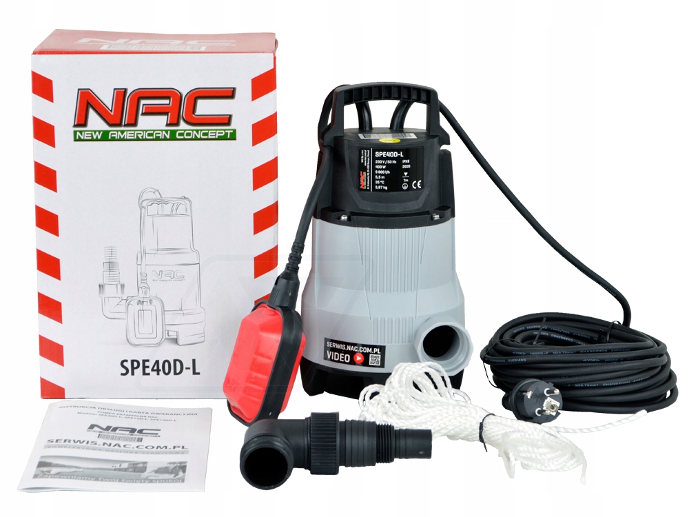 Pompa zanurzeniowa NAC SPE40D-L to uniwersalne urządzenie znajdujące zastosowanie przy pompowaniu zarówno wody czystej, brudnej, jak również ścieków. Moc urządzenia - 400W pozwala na uzyskanie zdolności do przepompowania 9 000 litrów płynu w ciągu jednej godziny, co gwarantuje nam dobrą wydajność urządzenia.