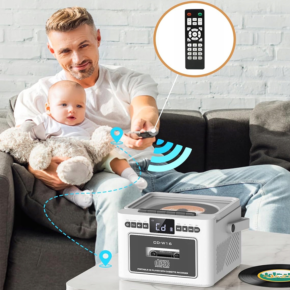 Odtwarzacz CD z radiem oferuje różne opcje odtwarzania, w tym CD, radio, kasety, Bluetooth 5.1, USB, AUX i kartę SD. Ten odtwarzacz kasetowy posiada ekran LED i pilot zdalnego sterowania ułatwiający obsługę. Z łatwością przełączaj utwory, reguluj głośność i wybieraj różne tryby odtwarzania. Dzięki temu wielofunkcyjnemu urządzeniu możesz cieszyć się ulubioną muzyką w różnych trybach.