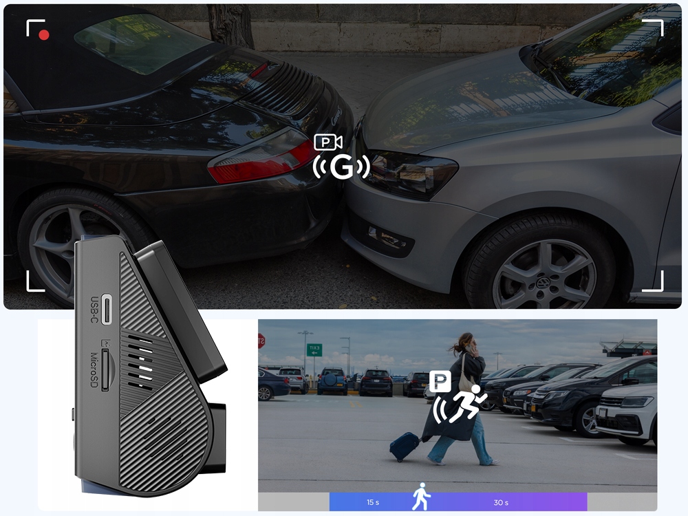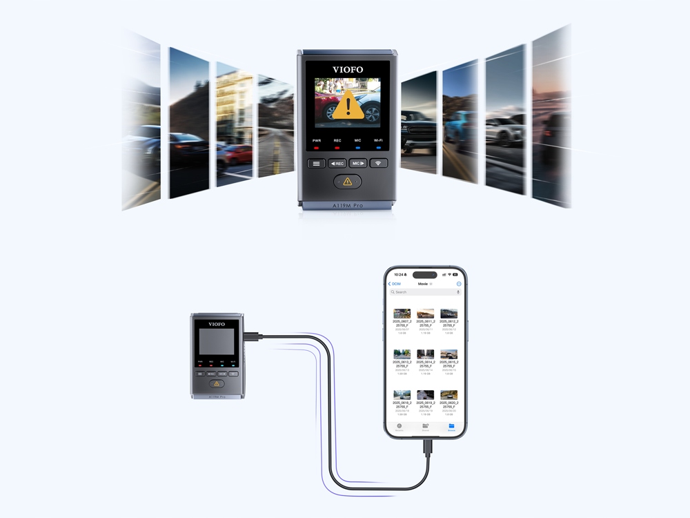 A119M Pro obsługuje płynne nagrywanie w pętli, automatycznie nadpisując najstarsze nagrania najnowszymi. Dzięki wbudowanemu czujnikowi przeciążeń (G-sensor), kamera samochodowa automatycznie zablokuje nagranie w przypadku kolizji lub wypadku, zachowując miejsce zdarzenia do celów śledztwa.