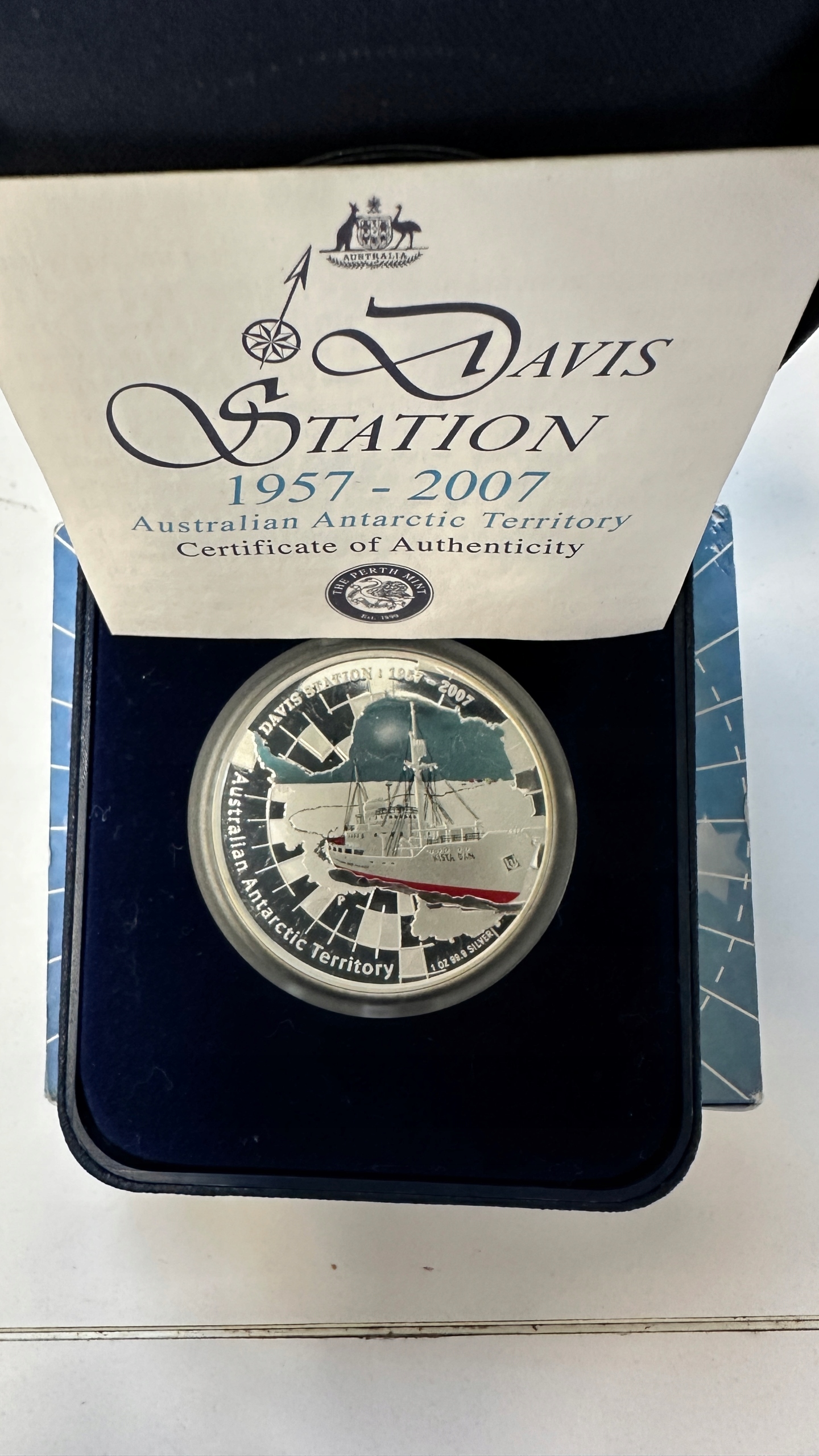 Przepiękna, kompletna kolekcja monet Australian Antarctic Territory, wyemitowana przez Mennicę Perth w latach 2004r-2015r. Monety przedstawiają antarktyczną przyrodę, taką jak pingwiny, lodowe krajobrazy, postacie historyczne i herby Australii. Wszystkie monety są w stanie menniczym i nigdy nie były wyjmowane z opakowań. To wyjątkowa okazja dla kolekcjonerów. Materiał: Monety srebrne, każda to 1 OZ srebra próby 999.9