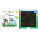 Kartonowa książeczka o zwierzętach z wesołymi wierszykami to zawsze strzał w dziesiątkę. Małe dzieci uwielbiają takie książeczki, a nasza propozycja ma dodatkową niespodziankę – do książki dołączona jest papierowa „latarka” – wystarczy tylko włożyć latarkę pomiędzy stronę a pokrywającą ją czarną folię, a ukryte na rysunku zwierzątka staną się widoczne. Zabawa w poszukiwanie zwierząt na kartach książki z pewnością spodoba się dziecku. Papierowa latarka przyczepiona jest do wstążeczki, dzięki czemu się nie zgubi. Po zabawie należy schować ją do wycięcia w książeczce. Z tą książką dziecko bawi się w detektywa, szuka zwierzątek, poznaje ich nazwy oraz wzbogaca pamięć i słownictwo po wysłuchaniu wierszyków. Kartonowa książeczka z latarką to doskonała zabawa dla małych dzieci i źródło wiedzy o zwierzętach.
