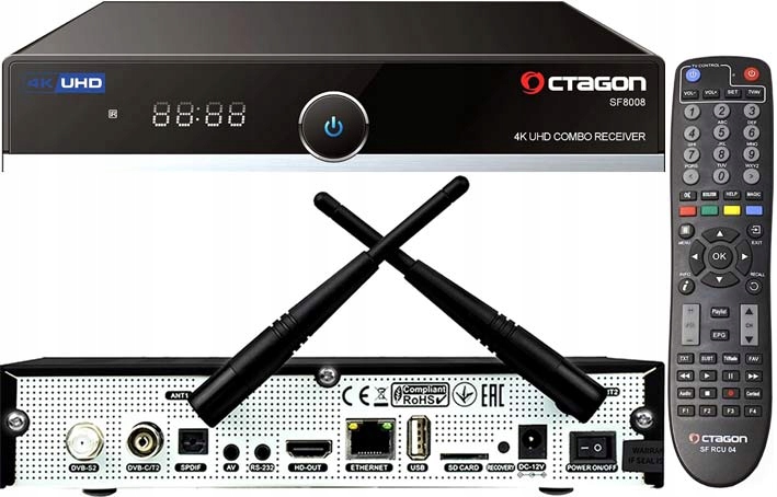 Octagon SF 8008 UHD-это приемник 4K UHD от производителя OCTAGON. Сердцем приемника является процессор HiSilicon Hi3798mv200 Huawei-это четырехъядерный процессор с тактовой частотой 4x1600 МГц. Он имеет 8 ГБ флэш-памяти и 1 ГБ оперативной памяти. Имеет спутниковую головку 1xdvb-S2X и DVB-T2 / C. имеет встроенную сетевую карту Gigabit LAN и встроенную карту WIFI для беспроводной связи.