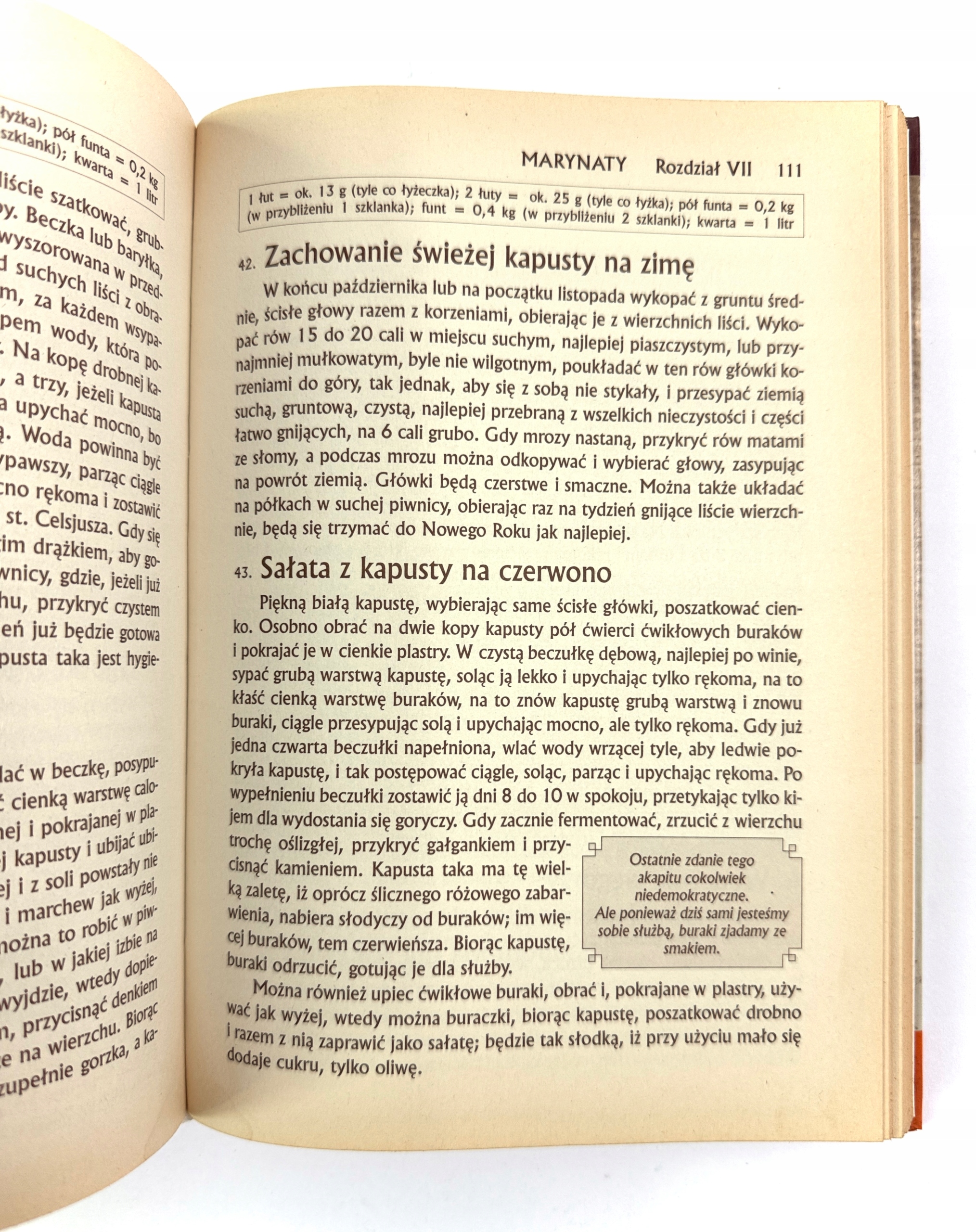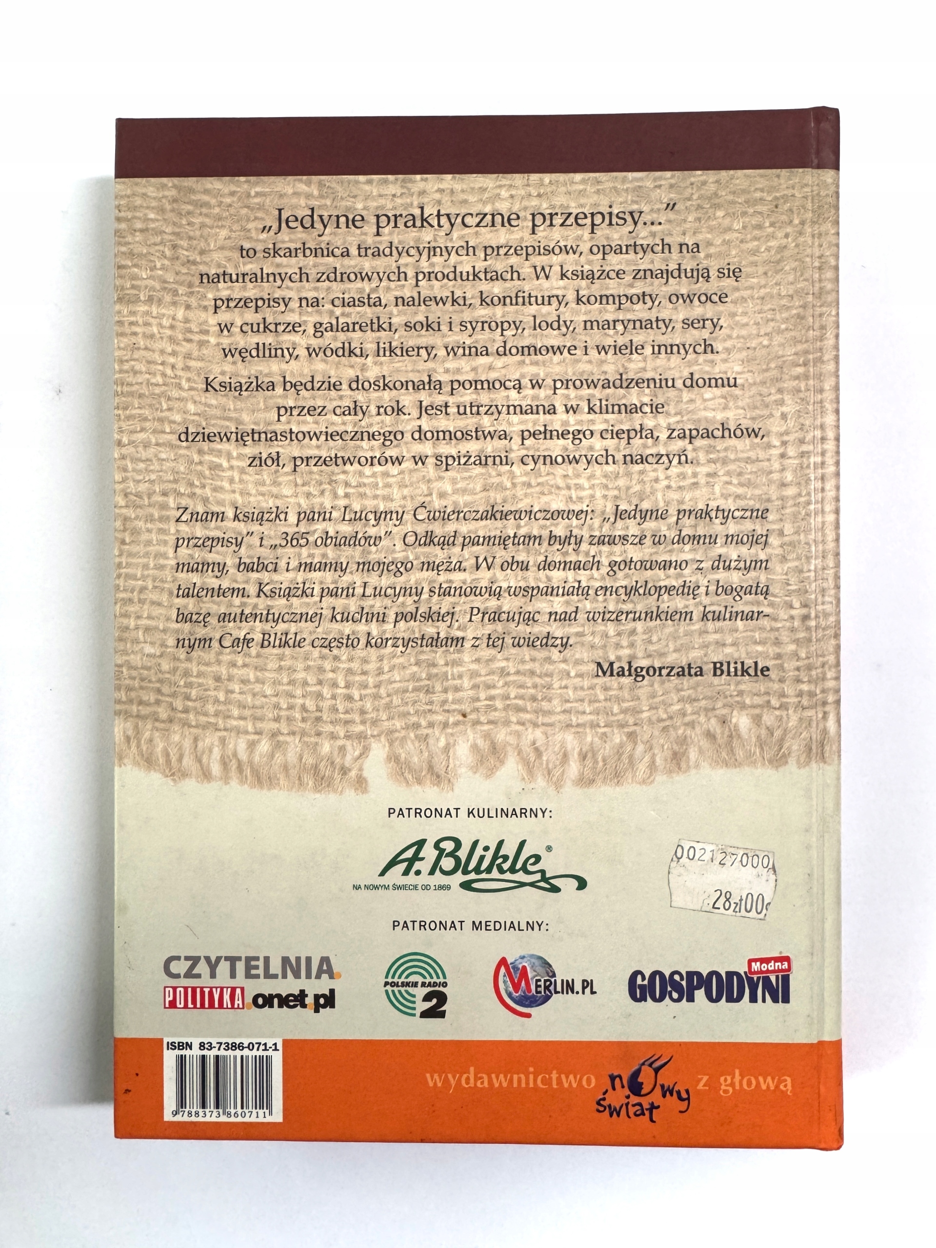 Skarbnica tradycyjnych przepisów, opartych na naturalnych zdrowych produktach. W książce znajdują się przepisy na: ciasta, nalewki, konfitury, kompoty, owoce w cukrze, galaretki, soki i syropy, lody, marynaty, sery, wędliny, likiery, wina domowe i wiele innych.