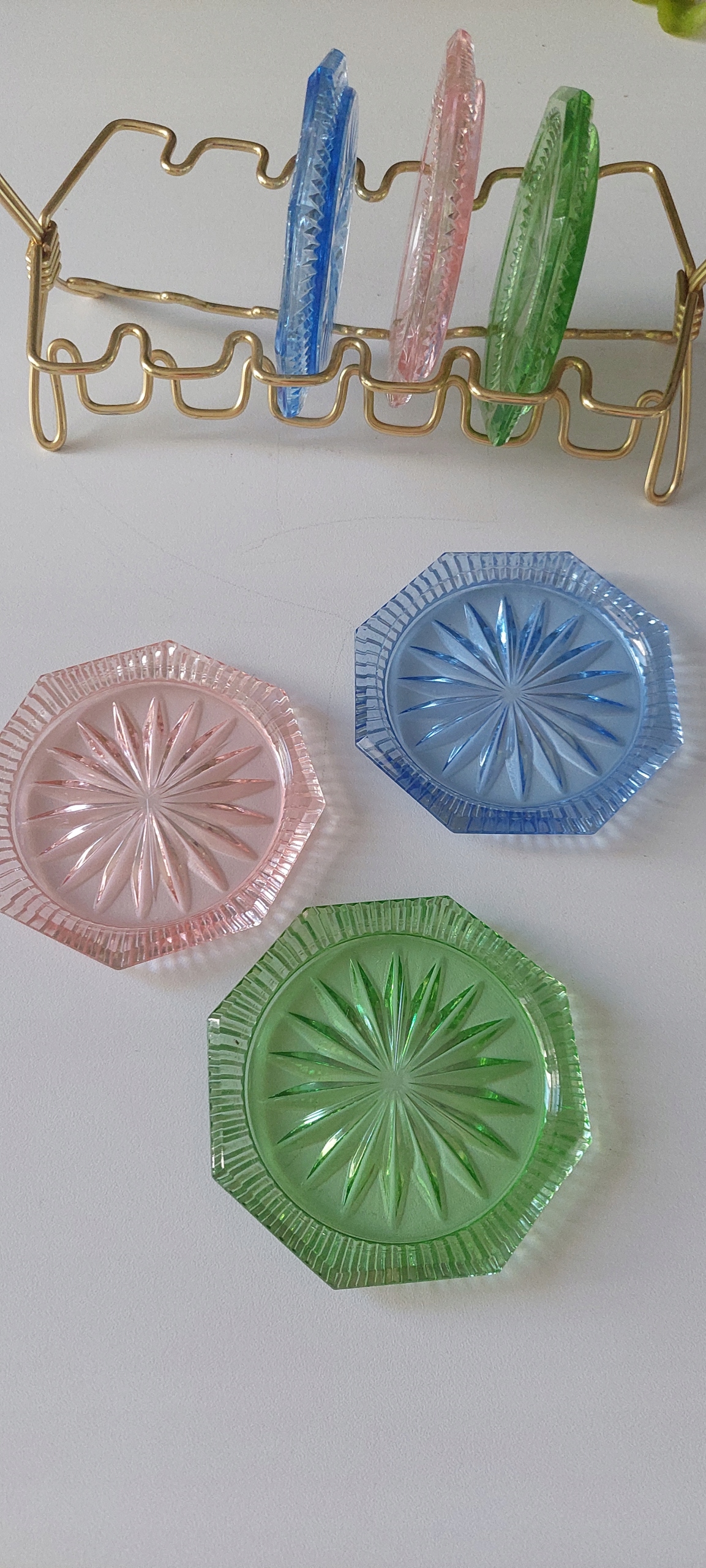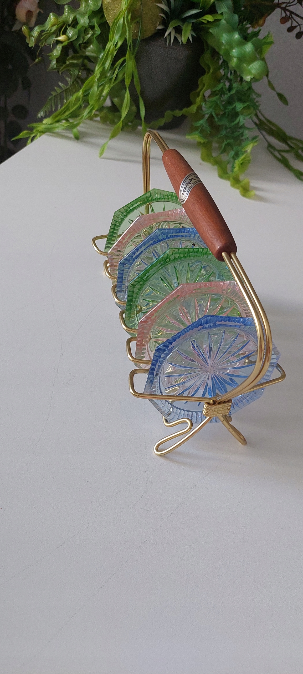 Sześć talerzyków w bardzo dobrym stanie na stojaku .Średnica talerzyka 9cm.
