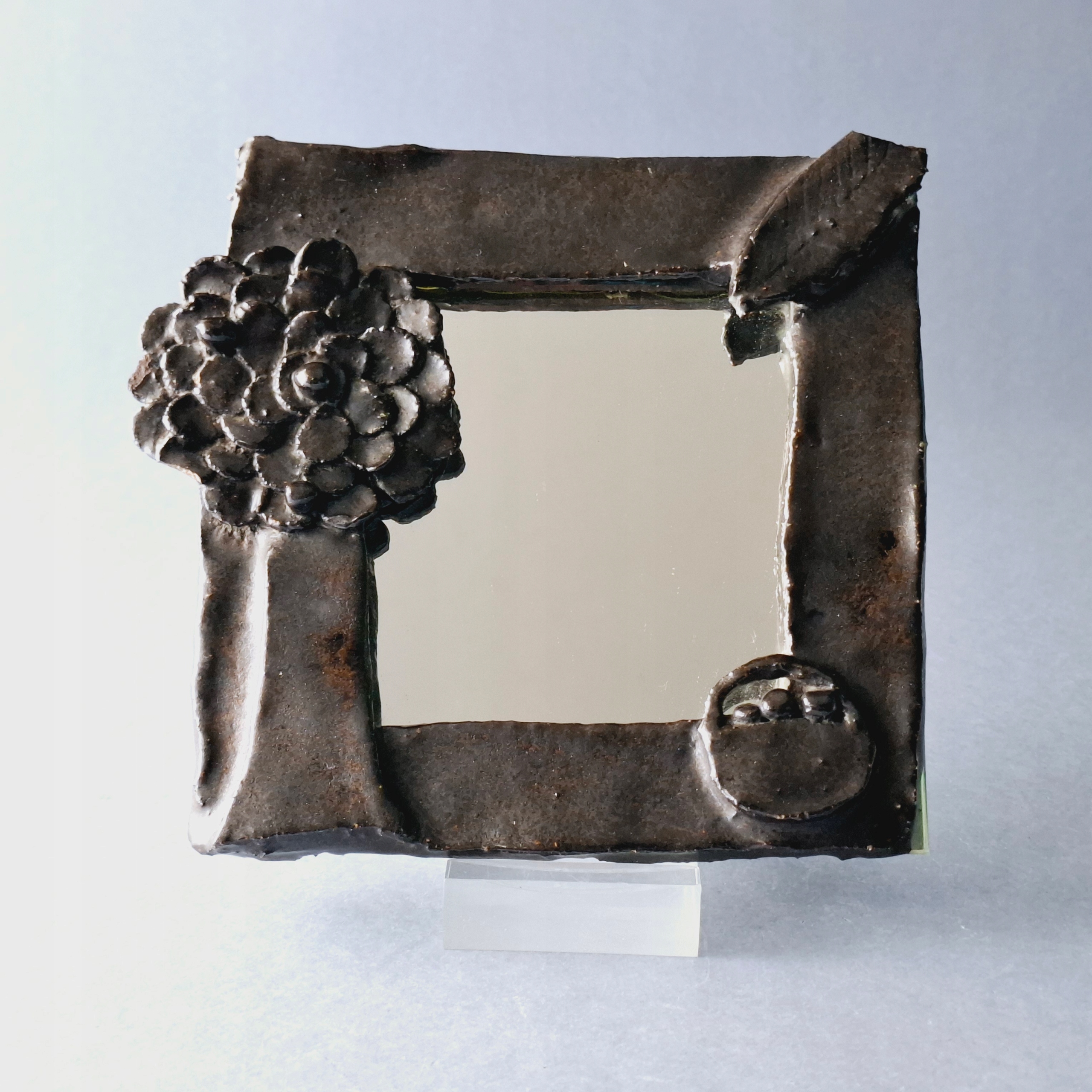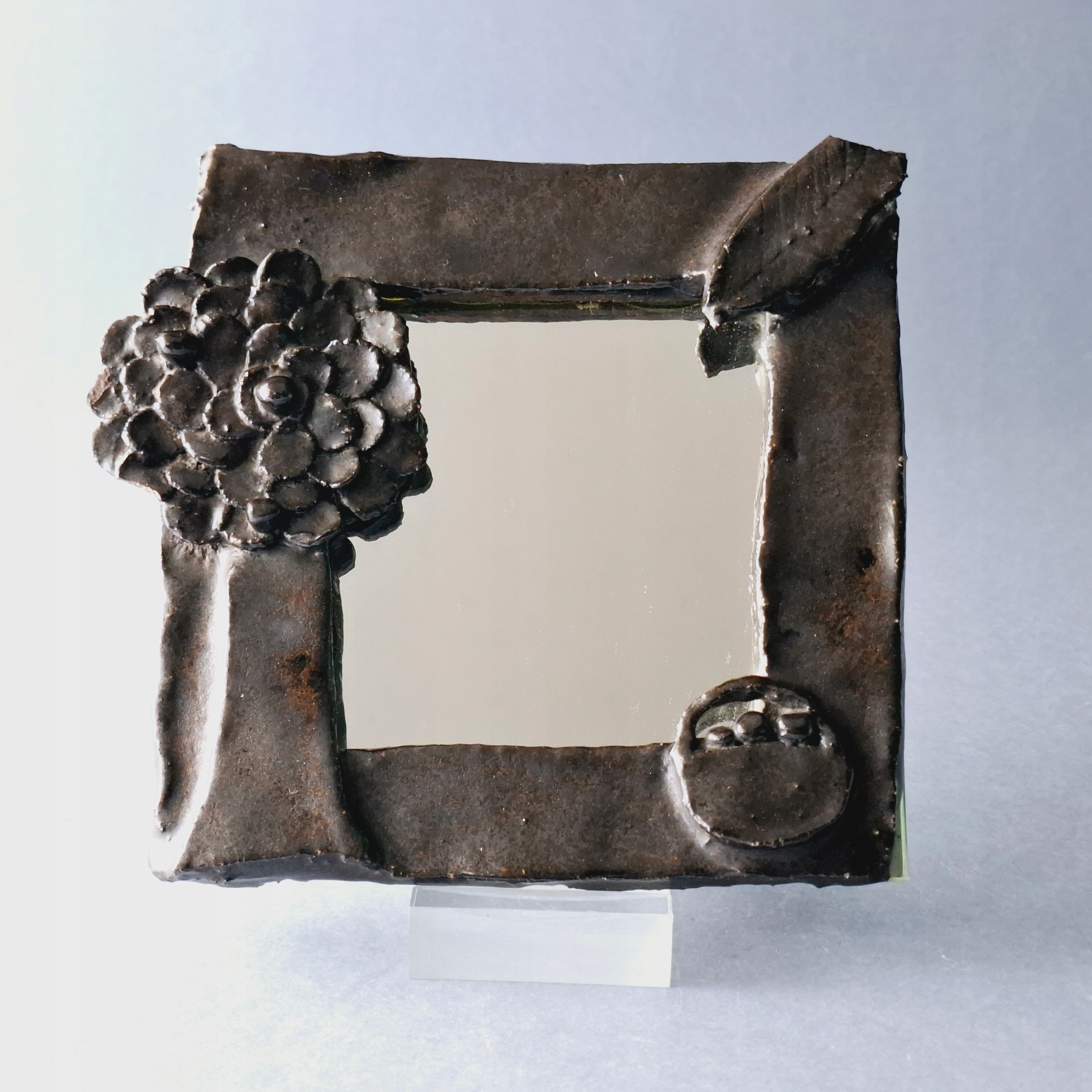 Bardzo ładne, stare, ręcznie wykonane lusterko ze szkliwionej ceramiki.