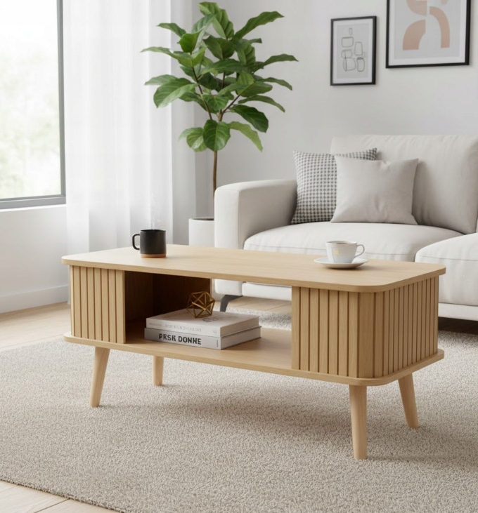 Stylowy, wykonany z pięknego jasnego drewna stolik kawowy, który pasuje zarówno do jasnego jak i ciemnego wystroju to rzecz obowiązkowa w każdym salonie.