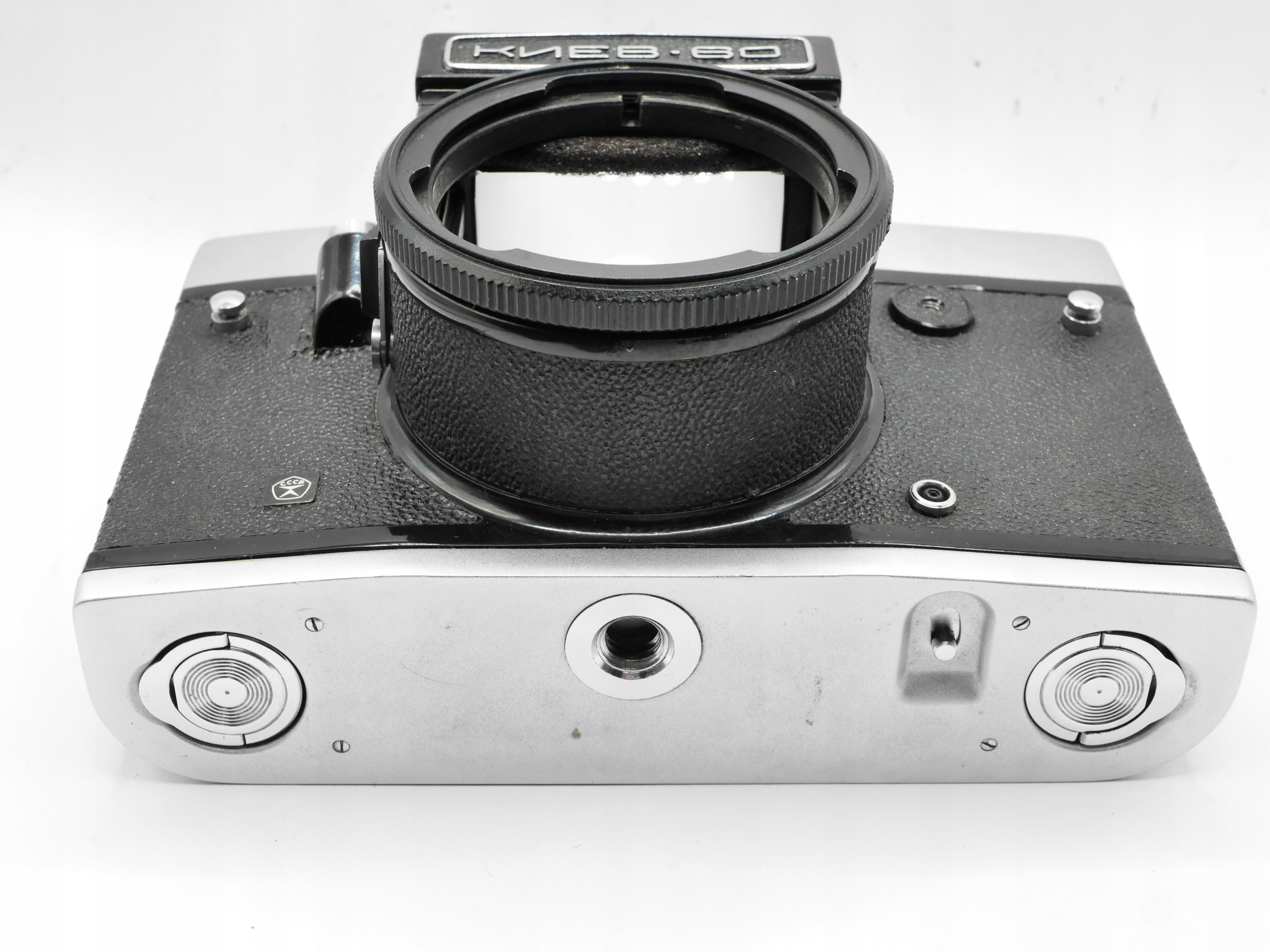 Kiev 60 stan jak na foto. Naciąga się, ale w pełni dopiero za drugim razem, zmienia czasy migawka bez prześwitów, kominek do naprawy. Całość do weryfikacji sprawności, anturaż dawce części lub do naprawy