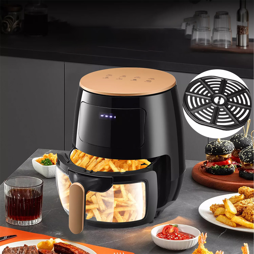 - 5 zaprogramowanych trybów gotowania: frytki, pizza, mięso, kurczak, orzechy. Wybierz zaprogramowany tryb gotowania, aby przygotować wszystkie swoje ulubione dania i pyszny posiłek.