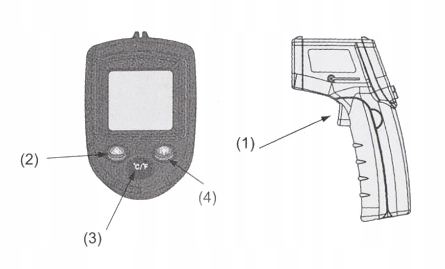 Uwaga ! Pirometr nie jest urządzeniem medycznym, nie jest przeznaczony do pomiaru temperatury ciała. Wskazywane przez niego wartości pokazują temperaturę powierzchniową, która w przypadku skóry jest inna niż temperatura wewnętrzna ciała.
