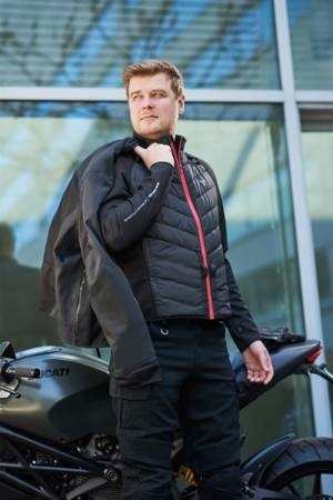 Ciepła, lekka, wygodna i stylowa – kurtka WARMUP dba o Twój komfort. Posiada dopasowany krój oraz długie, wąskie rękawy. Ma „ścięcie” z przodu, dzięki czemu – jeśli używasz jej jako wewnętrzną warstwę ocieplającą - nie wystaje spod kurtki. Ale model WARMUP z powodzeniem odegra również rolę zwykłej, casualowej kurtki. Doskonale sprawdzi się w codziennym użytkowaniu – i to nie tylko na motocyklu. Możesz używać jej również podczas innych aktywności na świeżym powietrzu. Posiada kieszenie, w których schowasz telefon lub dokumenty. Dzięki systemowi Evolink łatwo połączysz ją z Twoją ulubioną kurtką marki SHIMA. A czarny kolor sprawia, że WARMUP pasuje naprawdę do wielu stylizacji.