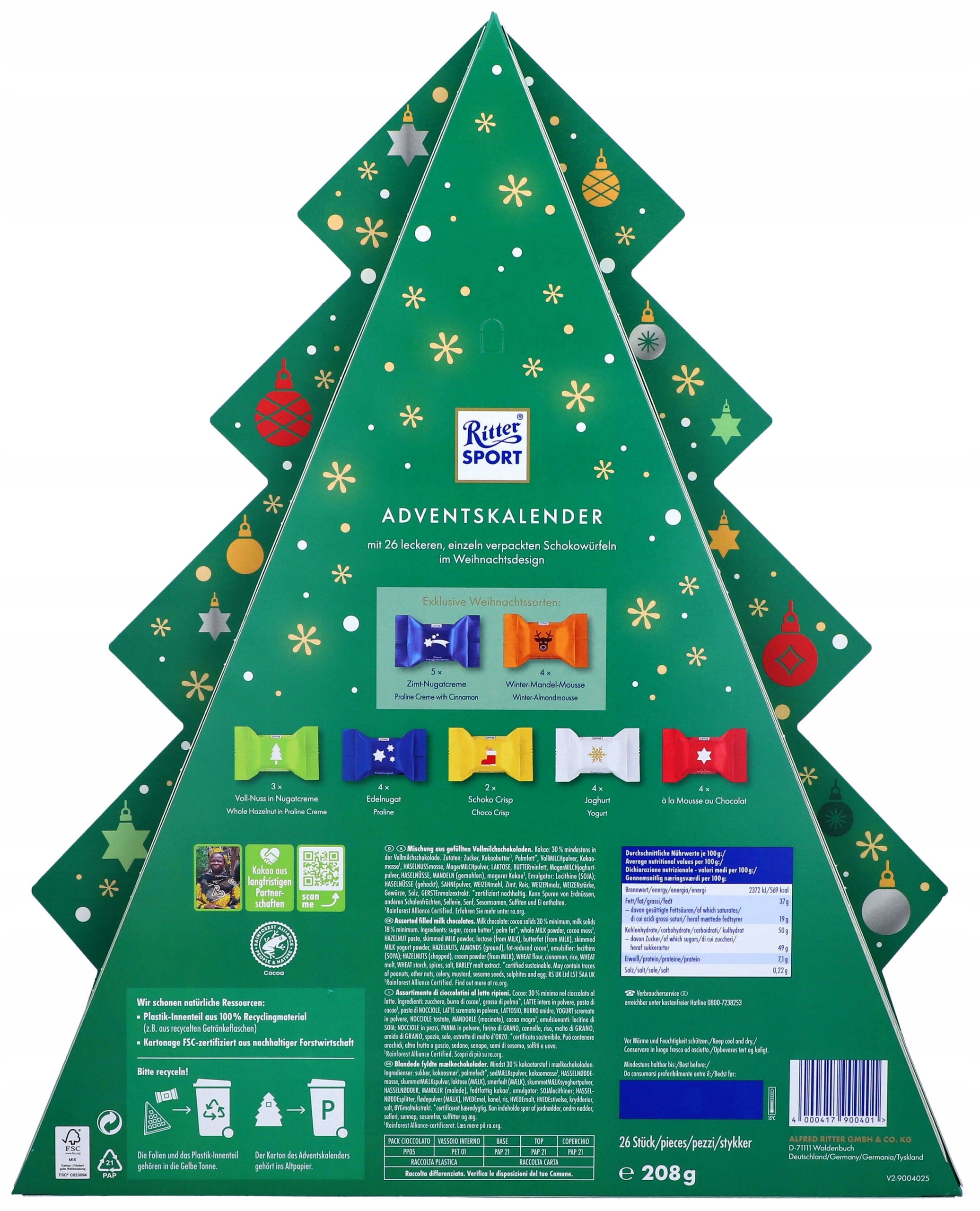 Торговое название Рождественский Календарь Шоколад Риттер Спорт Рождественская Елка