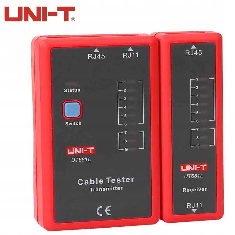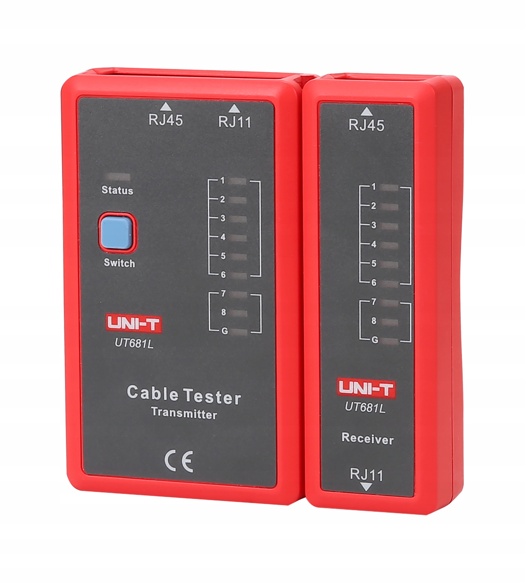 Tester UT-681L testuje poprawność zaprawienia kabla, kolejność żył we wtyku RJ-45 oraz RJ-11. Test odbywać się może z dwoma prędkościami. Tester może być pozostawiony z jednej strony przewodu, natomiast pilotem można wpiąć się na drugim końcu i dokonać pomiaru. Urządzenie wykonane jest z wytrzymałego tworzywa sztucznego co doskonale przydaje się podczas prac instalatorskich i gwarantuje długotrwałą poprawną pracę.