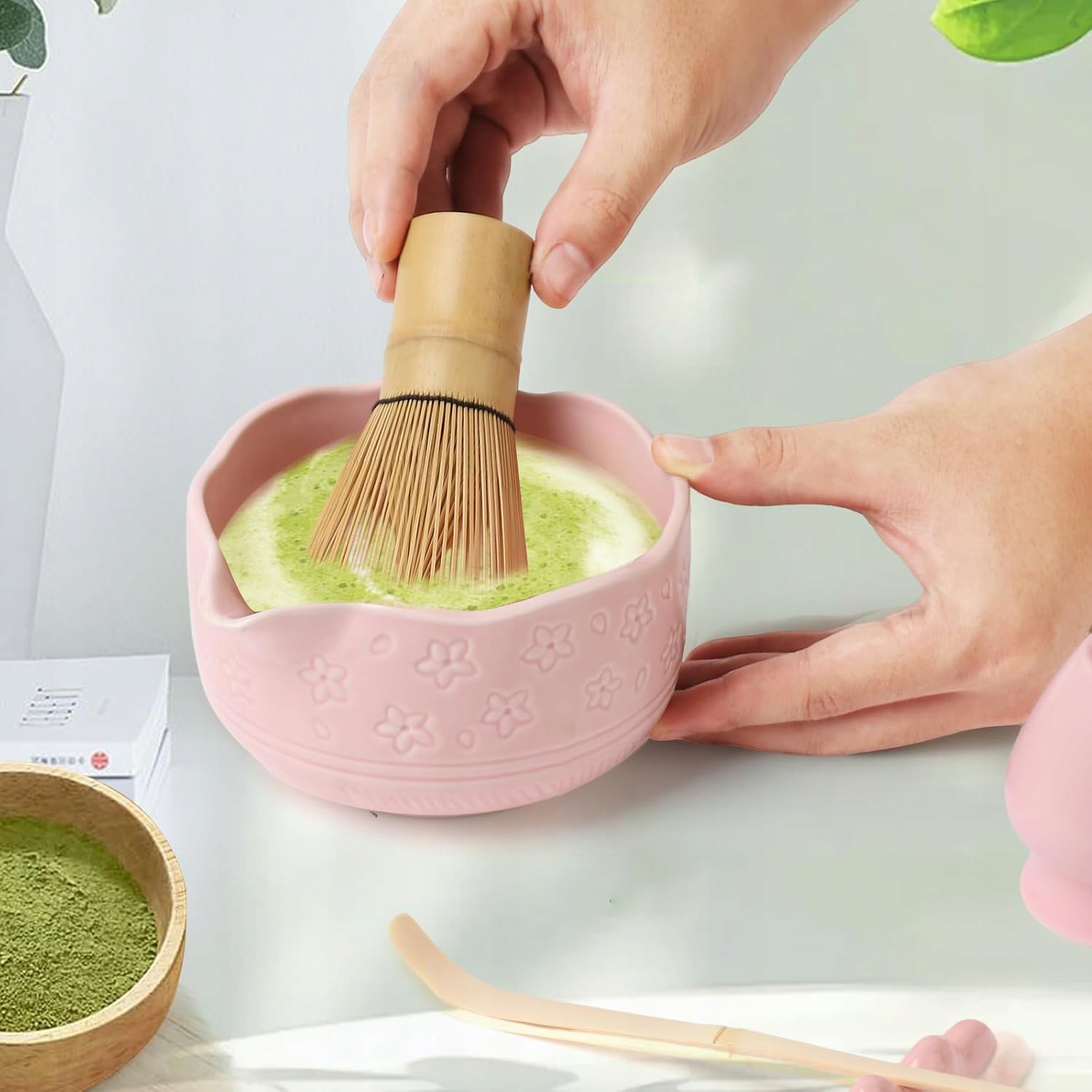 Precyzyjna bambusowa miotełka do uzyskania idealnej pianki: ręcznie montowana bambusowa miotełka (chasen) posiada około 90 cienkich ząbków, które skutecznie mieszają proszek matcha z wodą. Bez wysiłku tworzy aksamitną, gładką piankę – niezbędny element profesjonalnego doświadczenia matcha.
