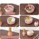 Gładka glazura, łatwe czyszczenie: wnętrze miseczki do matchy pokryte jest elegancką glazurą dopuszczoną do kontaktu z żywnością. Jej gładka powierzchnia nie tylko zwiększa komfort ubijania, ale także jest odporna na plamy, co zapewnia szybkie i łatwe czyszczenie po każdym użyciu.