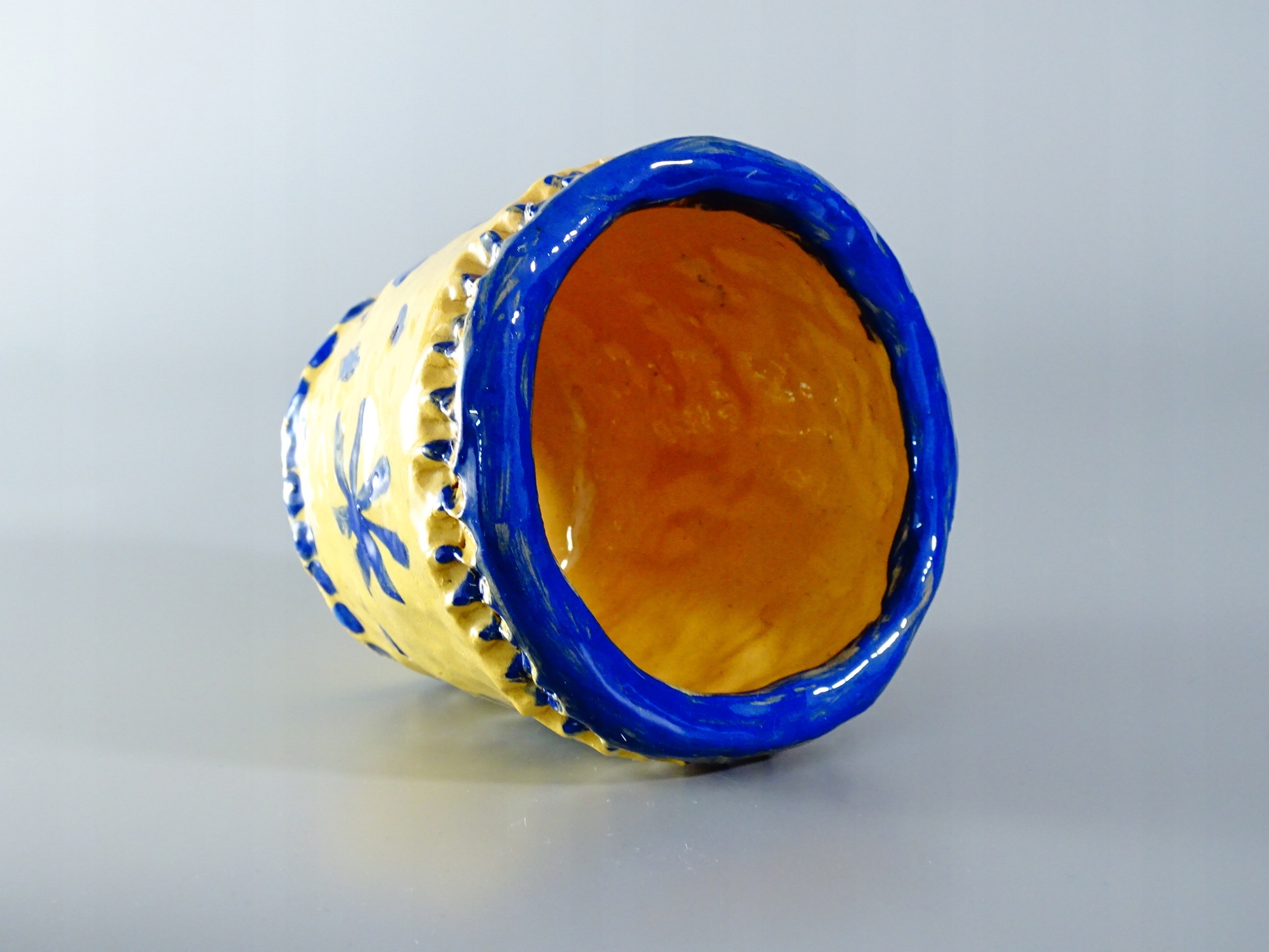Bardzo ładny, recznie wykonany pojemnik ze szkliwionej gliny.