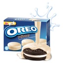 Ciastka kakaowe (38%) z nadzieniem o smaku waniliowym (19%) oblane białą polewą (43%).