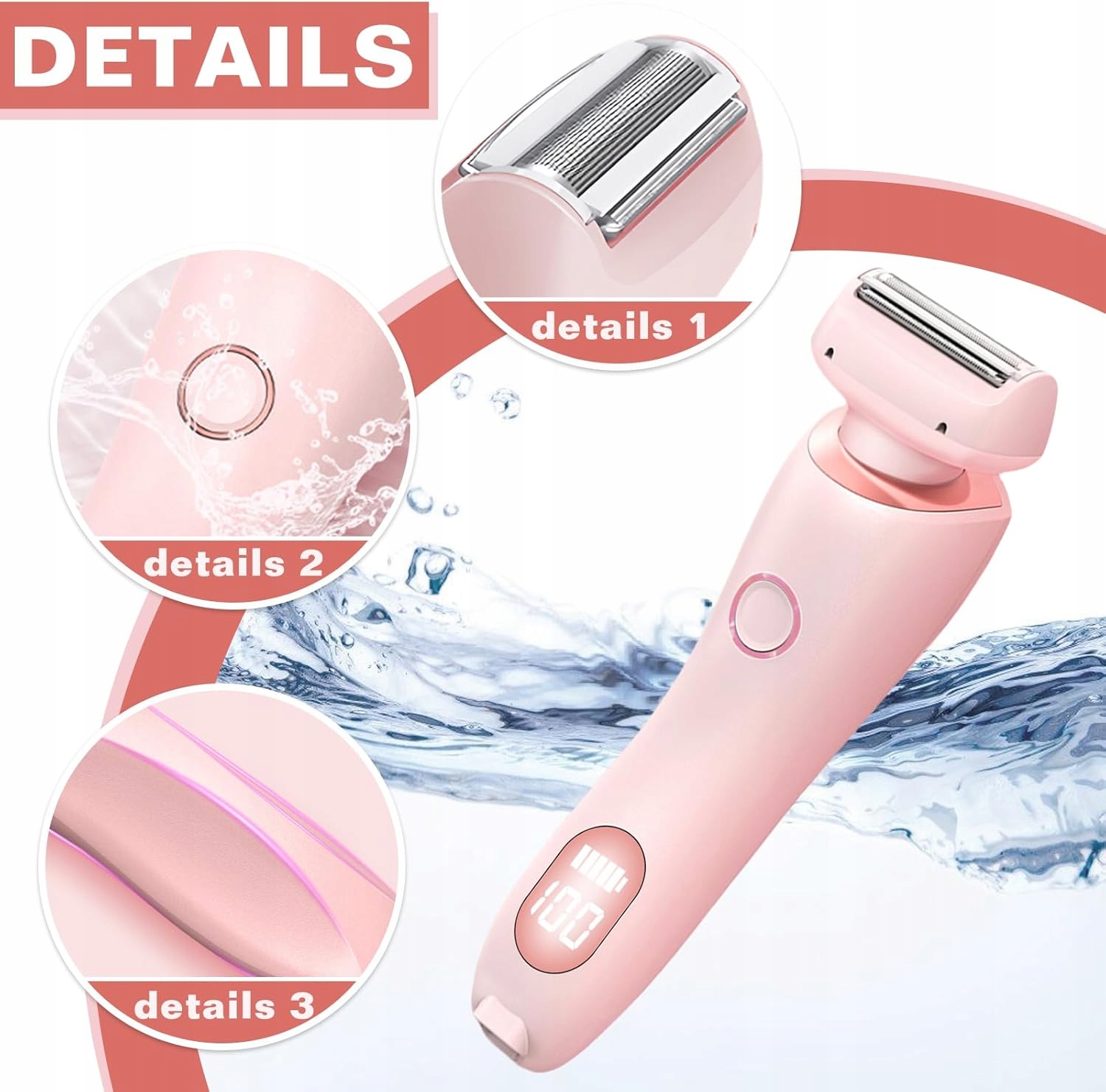 Zawiera proste ostrze do rąk i nóg, zakrzywione ostrze do pach i okolic bikini oraz pływającą folię 3D do krótkich włosów i pozostałości.