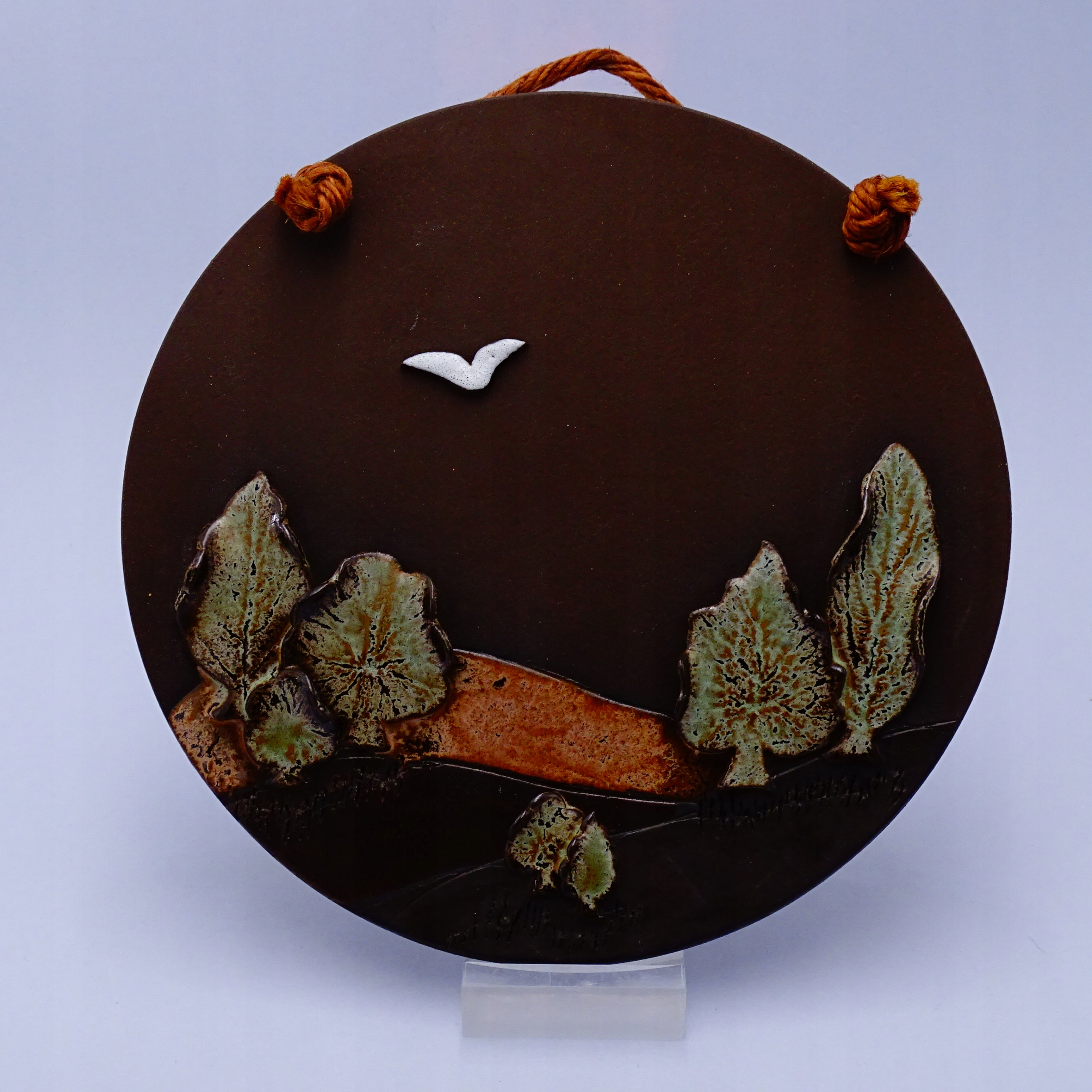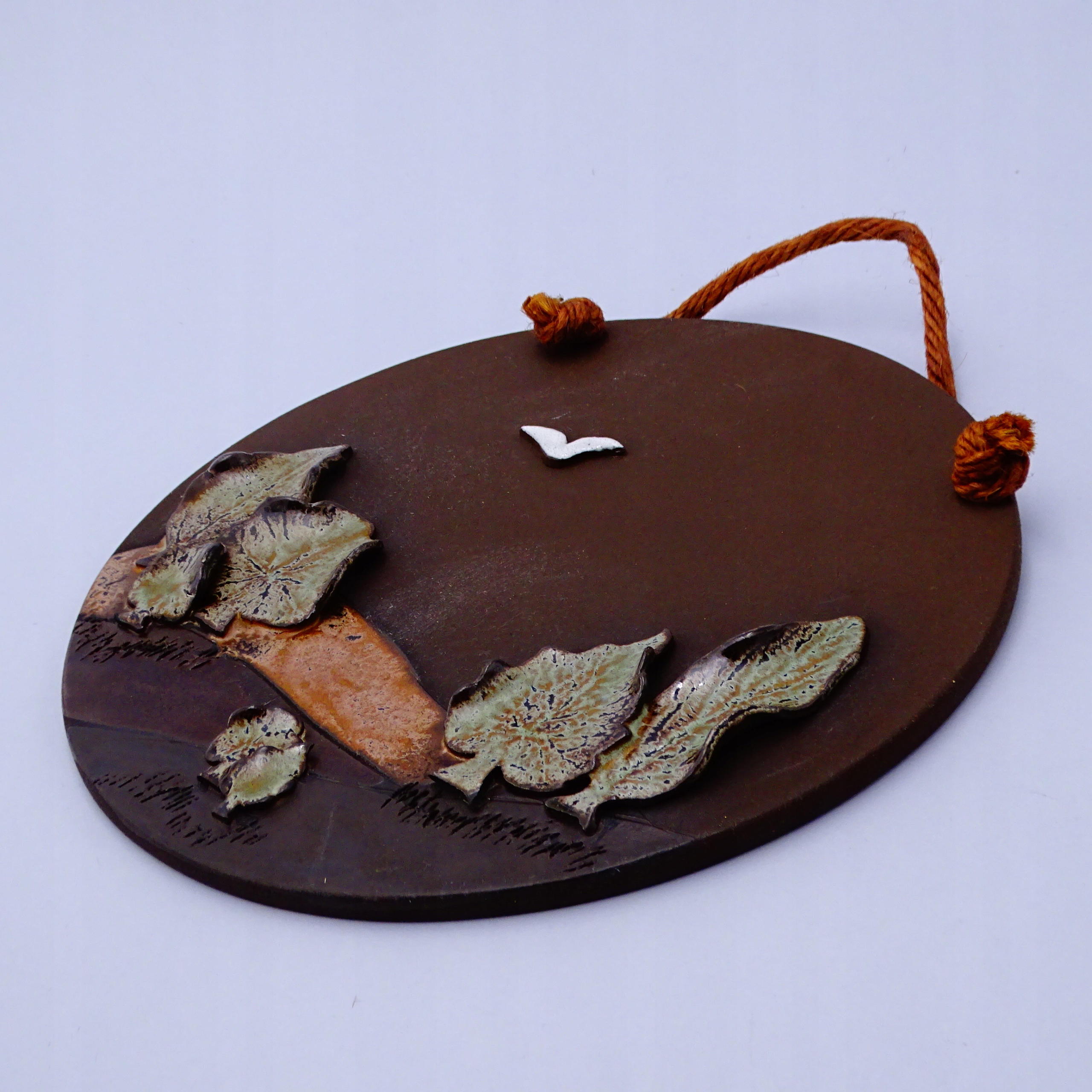 Piękna, płaskorzeźba naścienna wykonana ręcznie na kole garncarskim.