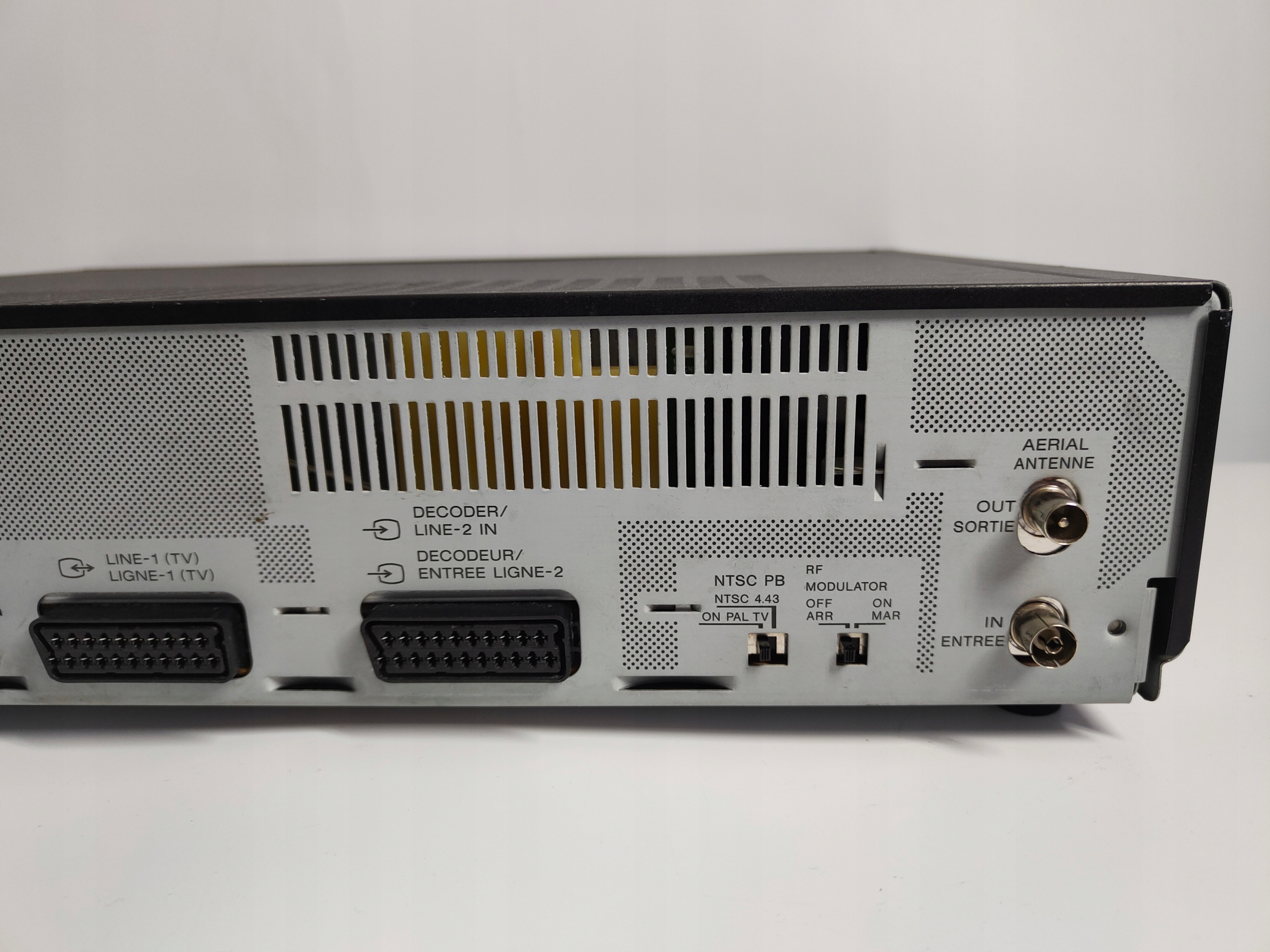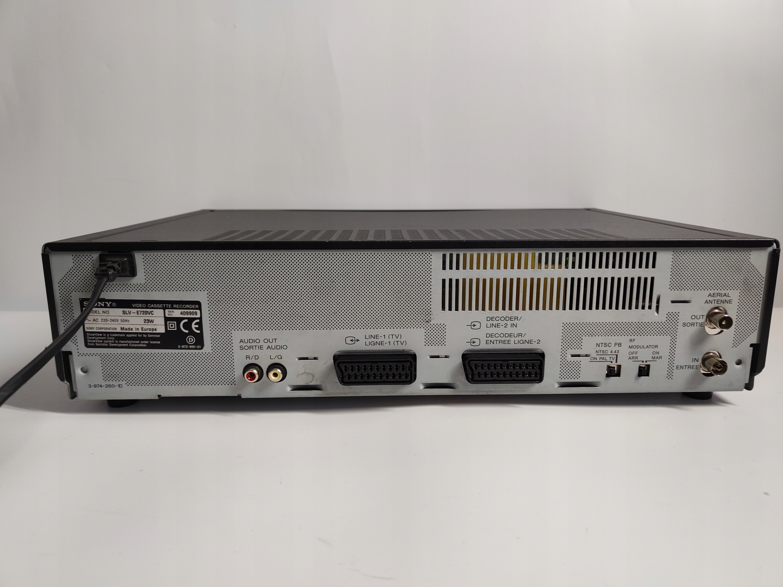 Используется рабочий видеомагнитофон VHS SONY SLV-E720 PAL NTSC. Нет пульта дистанционного управления, но большинство функций он на лицевой панели. Он играет хорошо, запись не проверял. Визуально немного царапин, и т.д. Клапан в слоте для картриджа не закрывается, но открывается без проблем при выдвижении. Я не первый владелец.