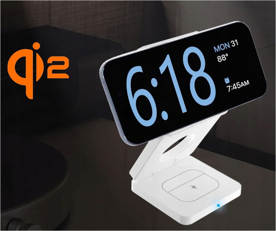 Składana konstrukcja tej ładowarki sprawia, że jest ona nie tylko niezwykle poręczna, ale także zajmuje niewiele miejsca. Można ją łatwo złożyć i nosić w torbie lub kieszeni, dzięki czemu idealnie nadaje się w pracy czy w podróży. Niezależnie od tego, czy jesteś w domu, w biurze, czy w podróży, ta magnetyczna, składana ładowarka bezprzewodowa 3 w 1 to niezawodne i wydajne rozwiązanie do ładowania Twoich urządzeń Apple i urządzeń z systemem Android obsługujących Qi oraz Qi2.