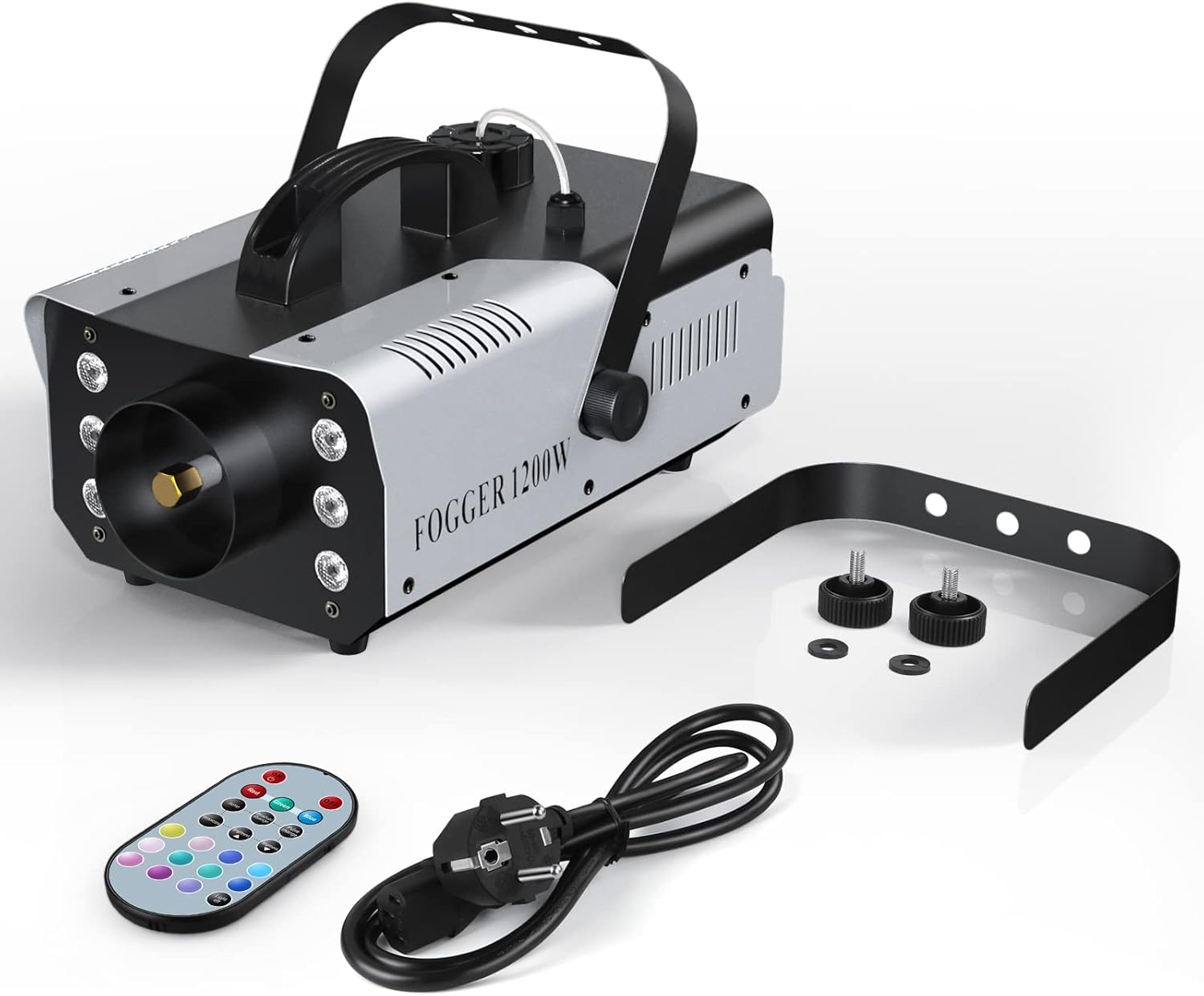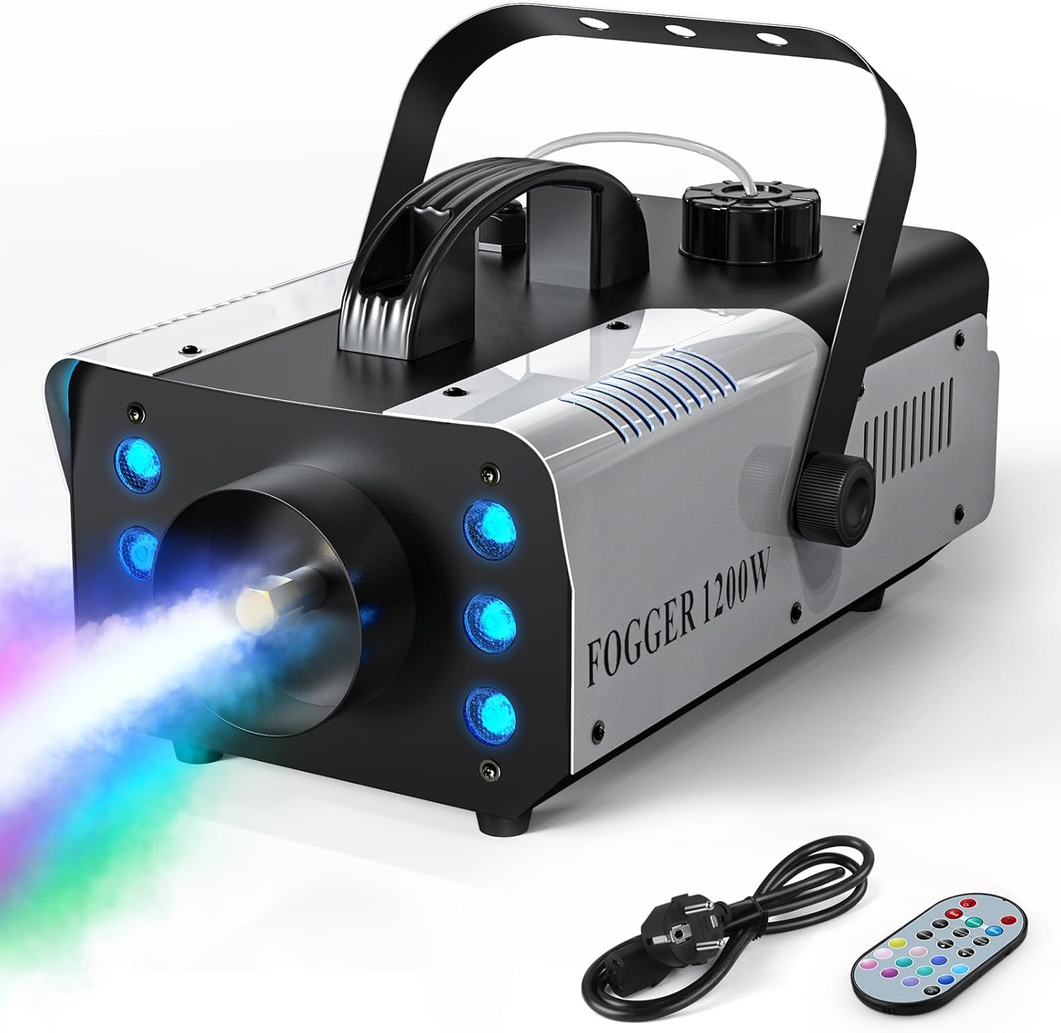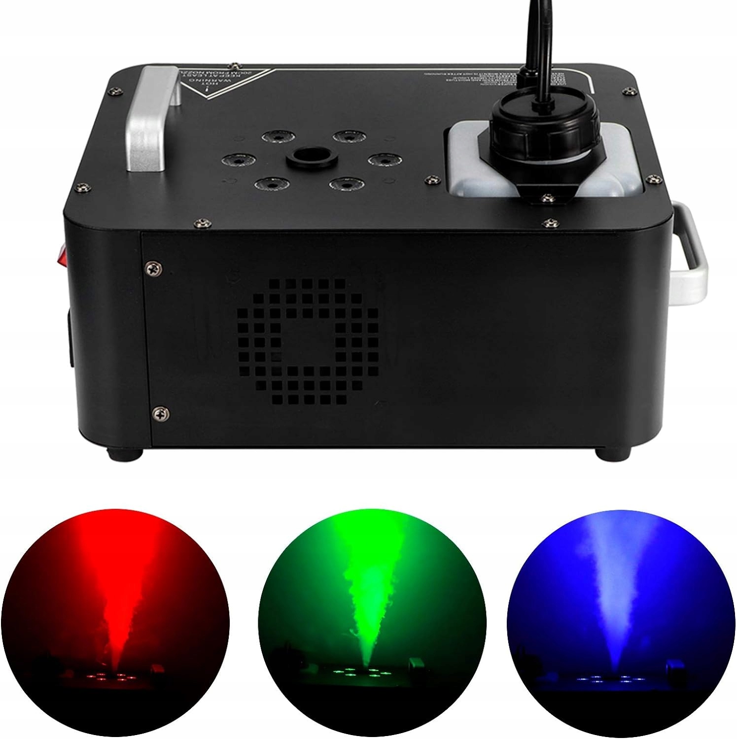 Maszyna dymowa jest wyposażona w 6 sztuk diod LED RGB 3 w 1, które podczas rozpylania dymu towarzyszą kolorowe światła, które bardzo dobrze nadają się do tworzenia atmosfery, takiej jak imprezy, sceny, wesela, koncerty na żywo, pokazy DJ, uroczystości rodzinne, Boże Narodzenie, Halloween itd.