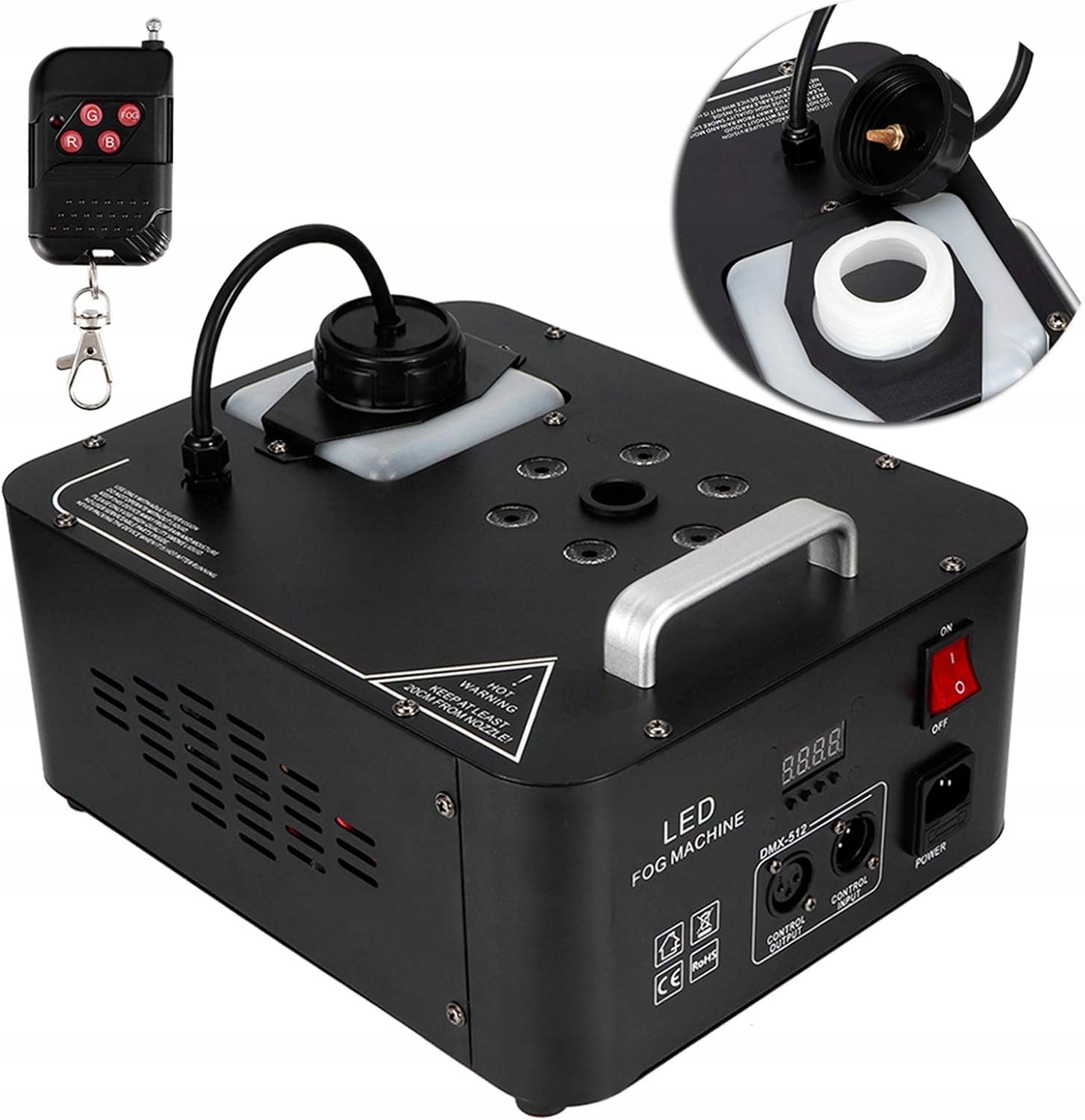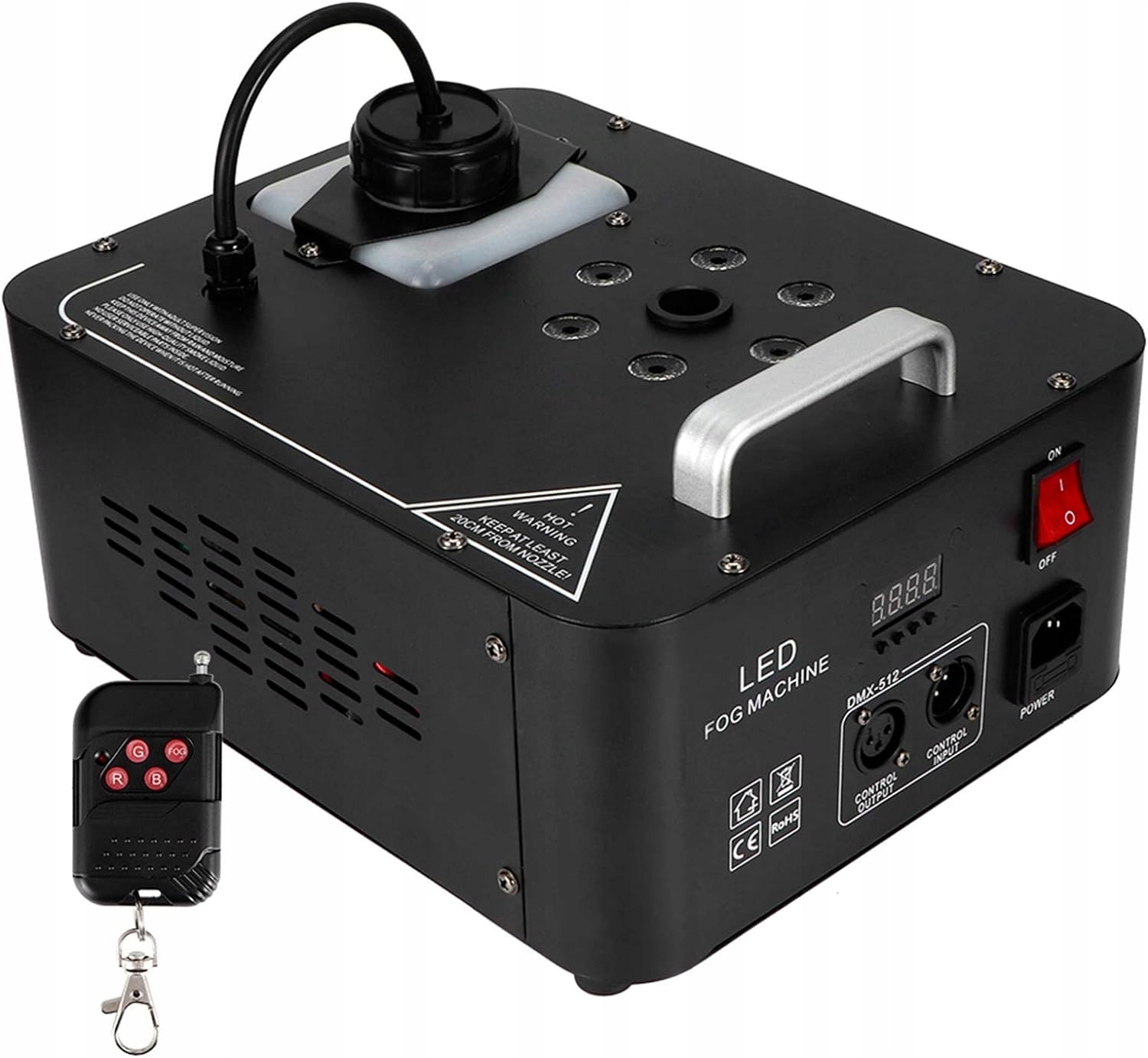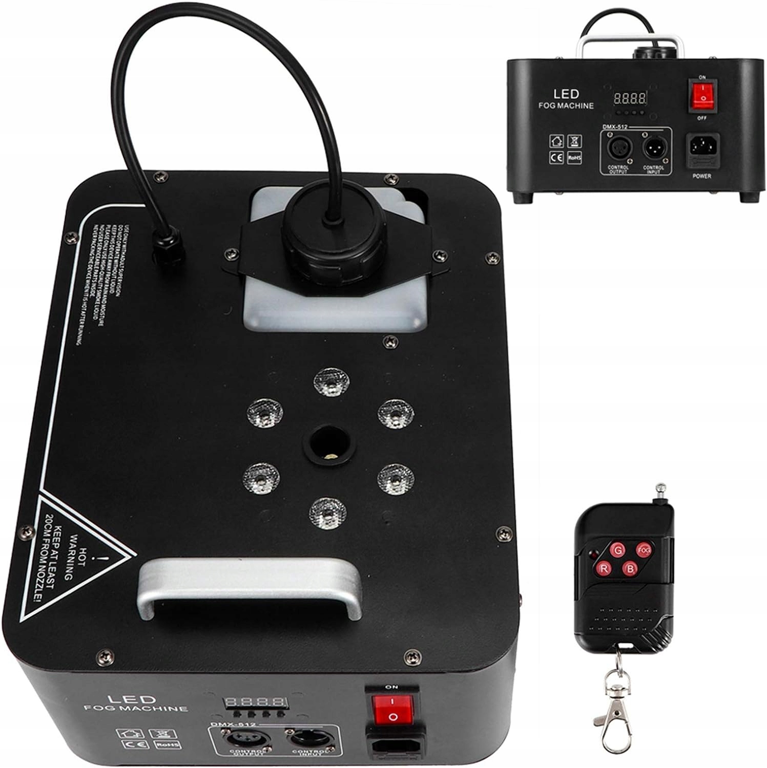 Maszyna dymowa jest wyposażona w 6 sztuk diod LED RGB 3 w 1, które podczas rozpylania dymu towarzyszą kolorowe światła, które bardzo dobrze nadają się do tworzenia atmosfery, takiej jak imprezy, sceny, wesela, koncerty na żywo, pokazy DJ, uroczystości rodzinne, Boże Narodzenie, Halloween itd.