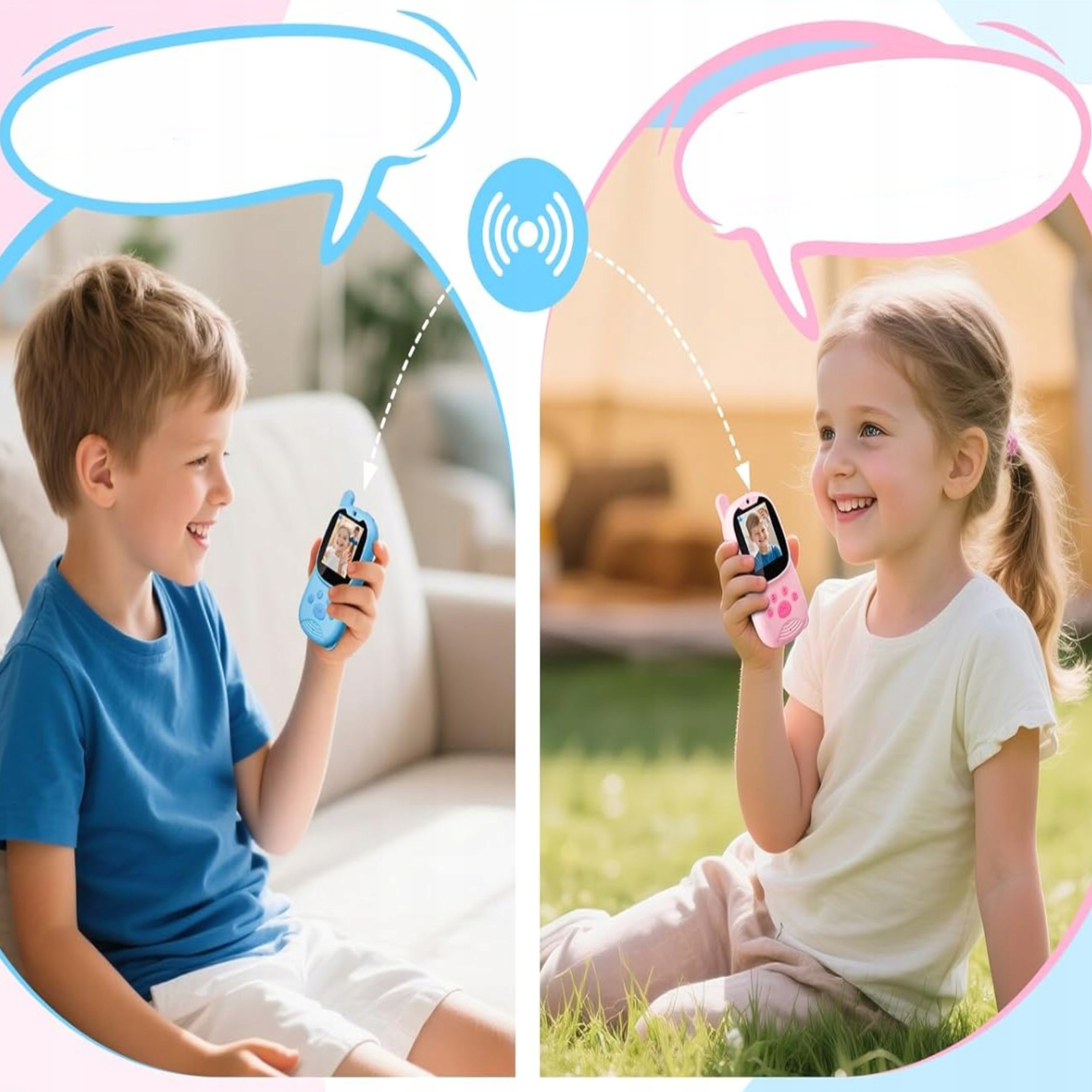 Nowoczesny dziecięcy wideotelefon to połączenie klasycznej krótkofalówki z rozmowami wideo, aparatem fotograficznym i zabawnymi efektami. Idealny dla rodzeństwa lub przyjaciół – bez internetu, bez aplikacji, bez smartfona.