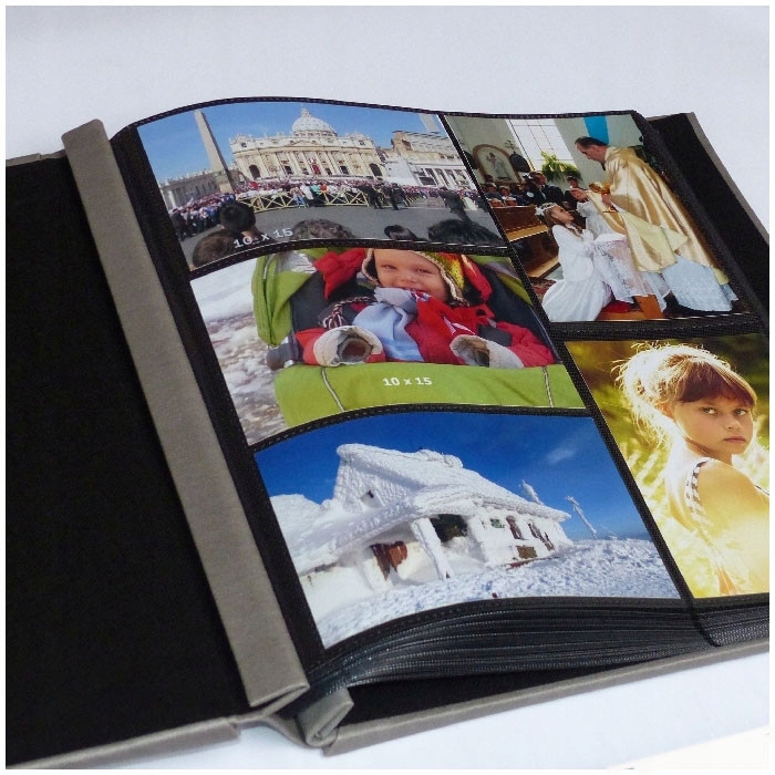 Zdjęcia wsuwa się w specjalne, foliowe kieszonki. Jest to bardzo wygodne i praktyczne. Nie potrzeba kleju, a fotografie można przekładać i wyciągać.