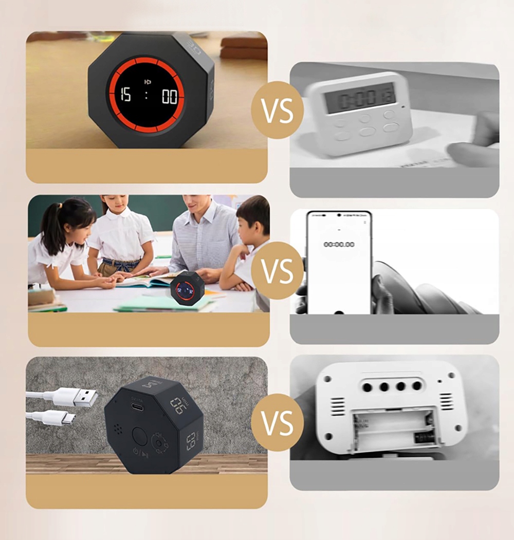 W porównaniu z zegarami kuchennymi dostępnymi na rynku, nasz cyfrowy zegar kuchenny ma wizualny czerwony pasek postępu, który stopniowo znika z czasem. Po zakończeniu odliczania pasek postępu znika. Wszystko znika. Ponadto nasz cyfrowy zegar kuchenny ma również cyfrowy ekran LED, który jest wygodny w każdej chwili, podczas pomiaru czasu lub odliczania.