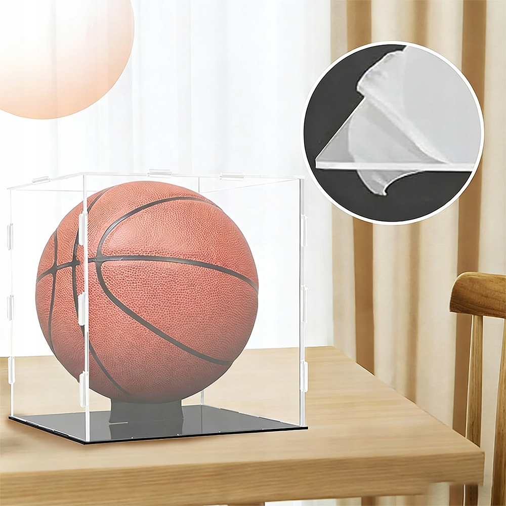 🏀-Wymiary wewnętrzne: 25*25*27 cm, odpowiednia do piłek do piłki nożnej, siatkówki, kręgli, rugby, koszykówki itp. o średnicy nie przekraczającej 25 cm. (Uwaga: folie ochronne na płytach akrylowych i podstawie można zdjąć.)