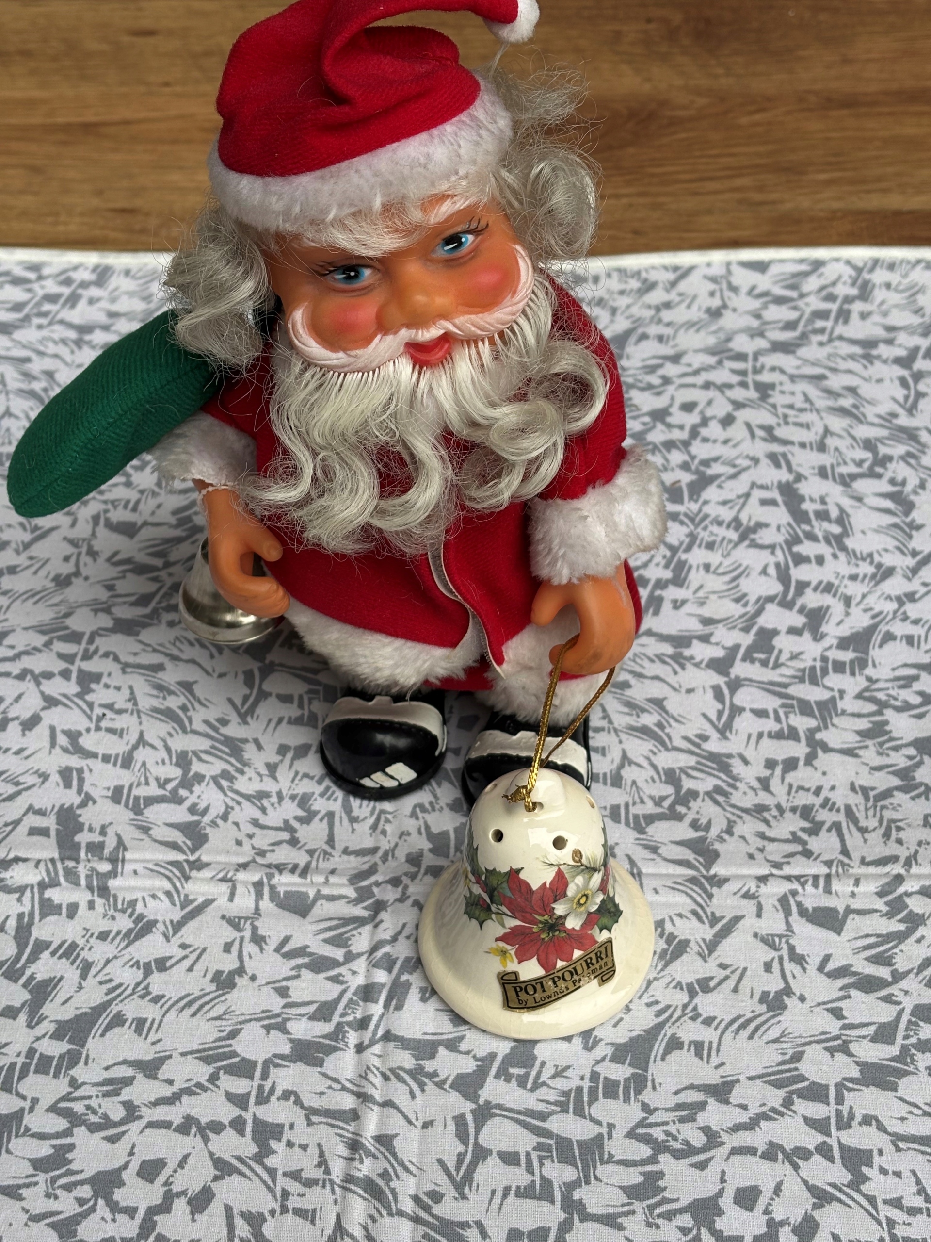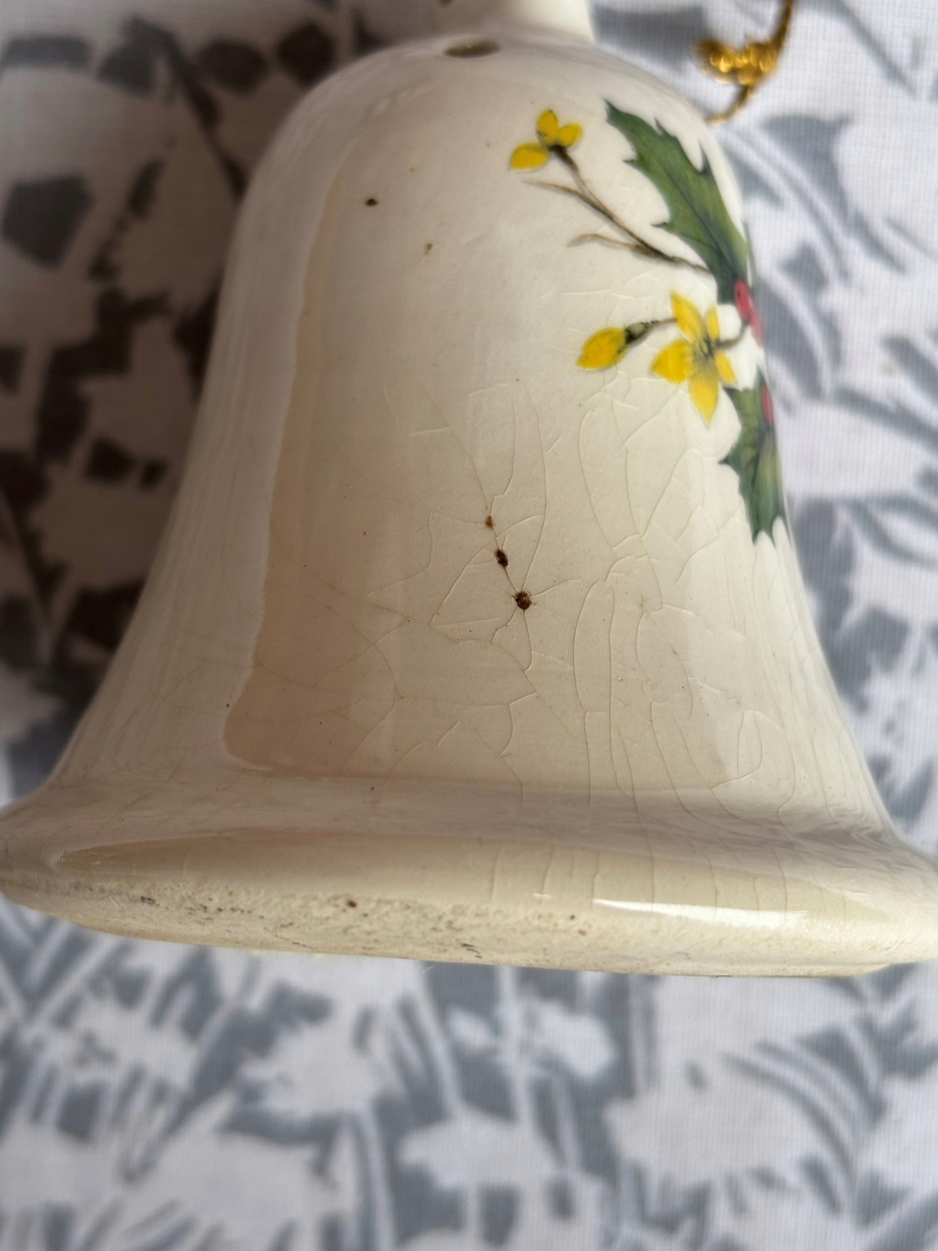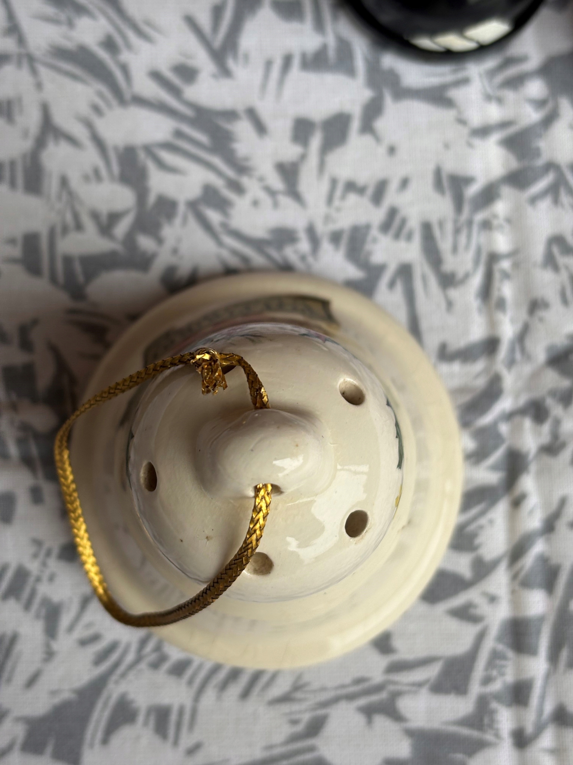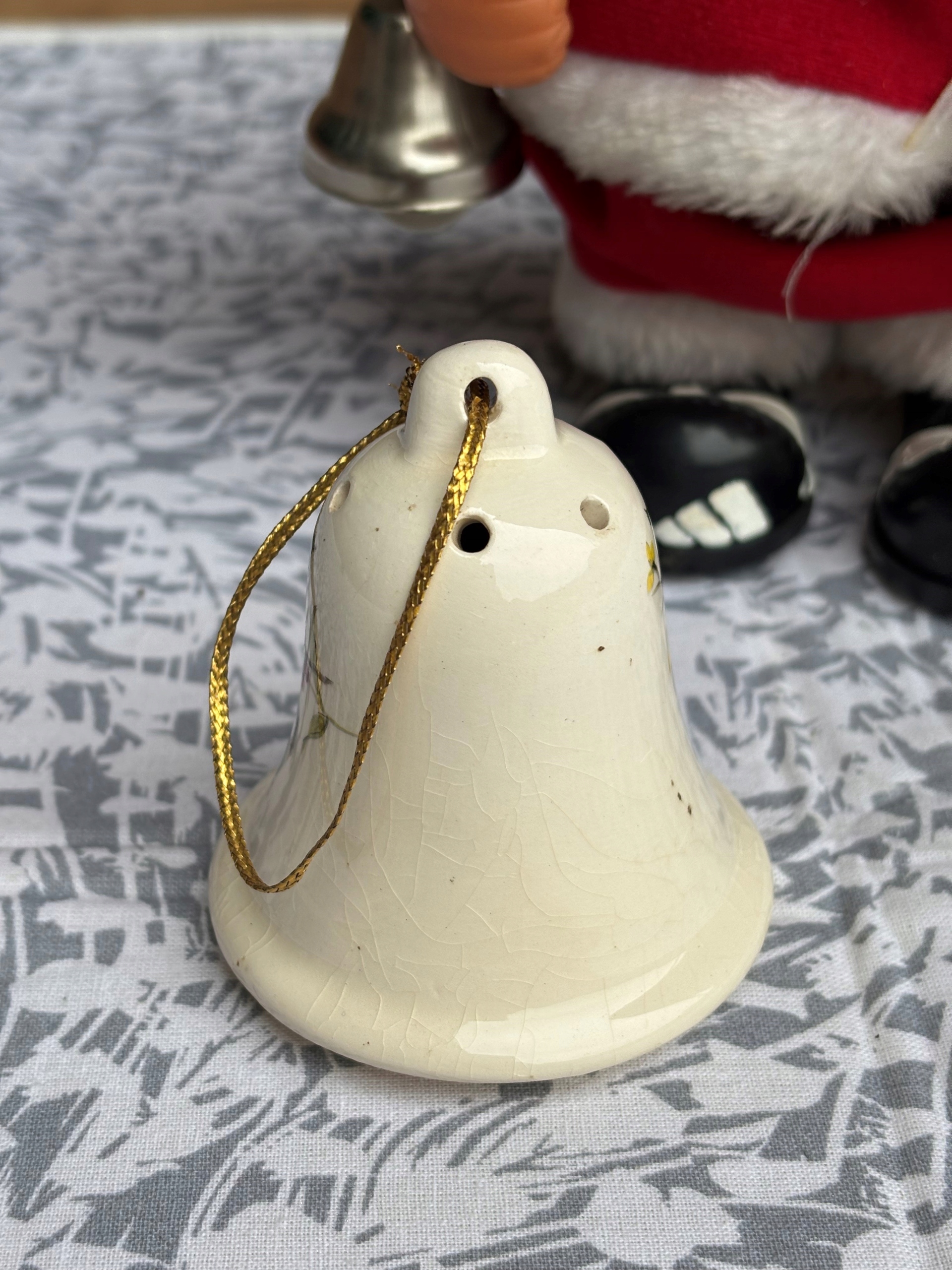 Ceramiczny dzwonek, ozdoba choinkowa. Wymiary; wys. 8 x 7 cm. Sygnowany Pot Pourri by Lowndes Pareman. Stan przedmiotu pokazany na załączonych zdjęciach.