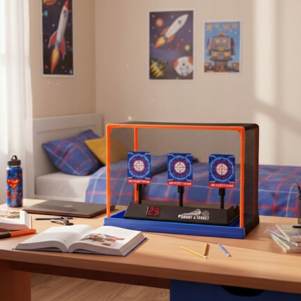 Strzelnica świetnie sprawdza się podczas zabawy w grupie — pozwala organizować turnieje, liczyć wyniki i rywalizować z przyjaciółmi lub rodzeństwem.