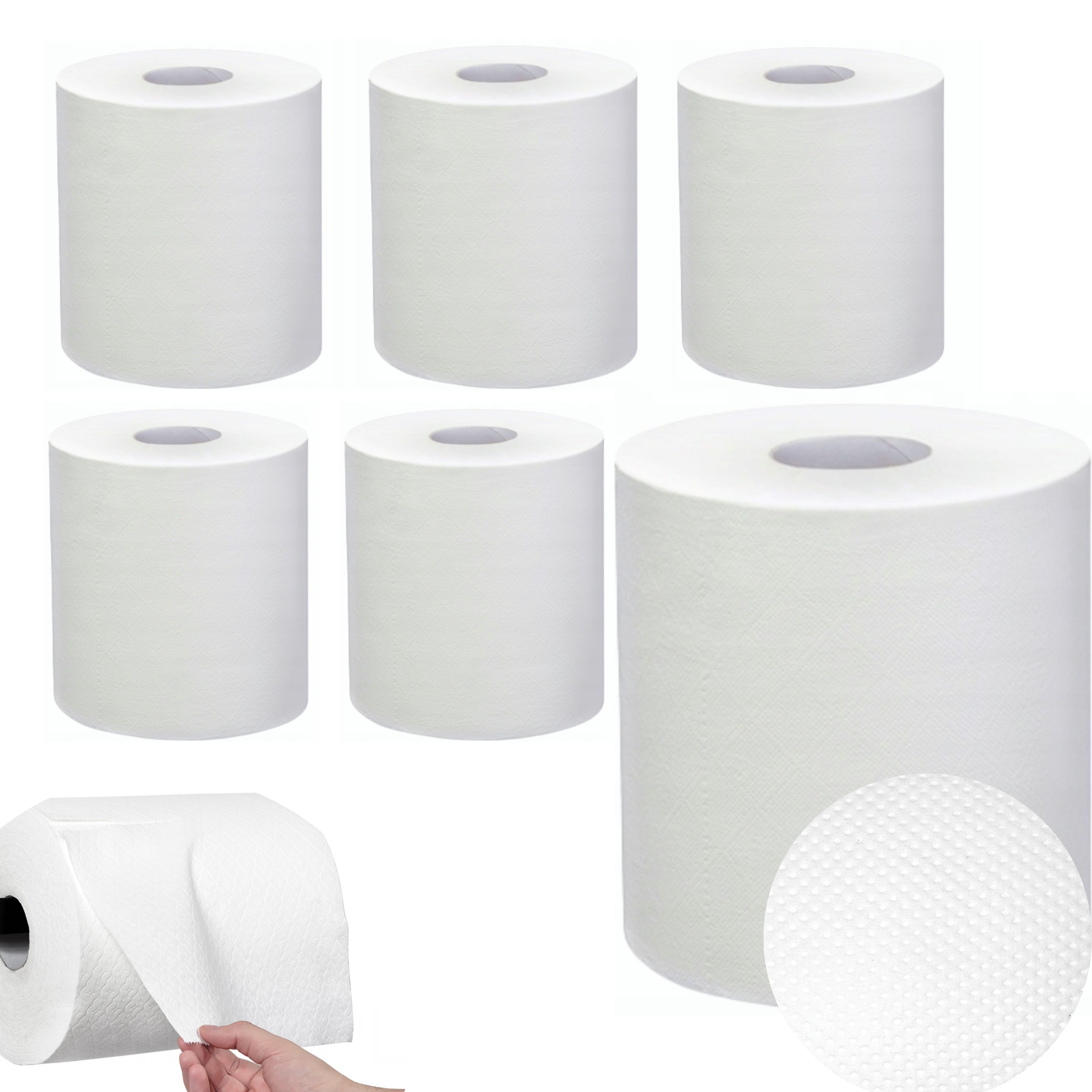 ⭐ Materiał: Ręczniki papierowe w rolce są wykonane z wysokiej jakości papieru celulozowego. Są miękkie w dotyku, ale jednocześnie wytrzymałe, aby sprostać codziennemu użytkowaniu.