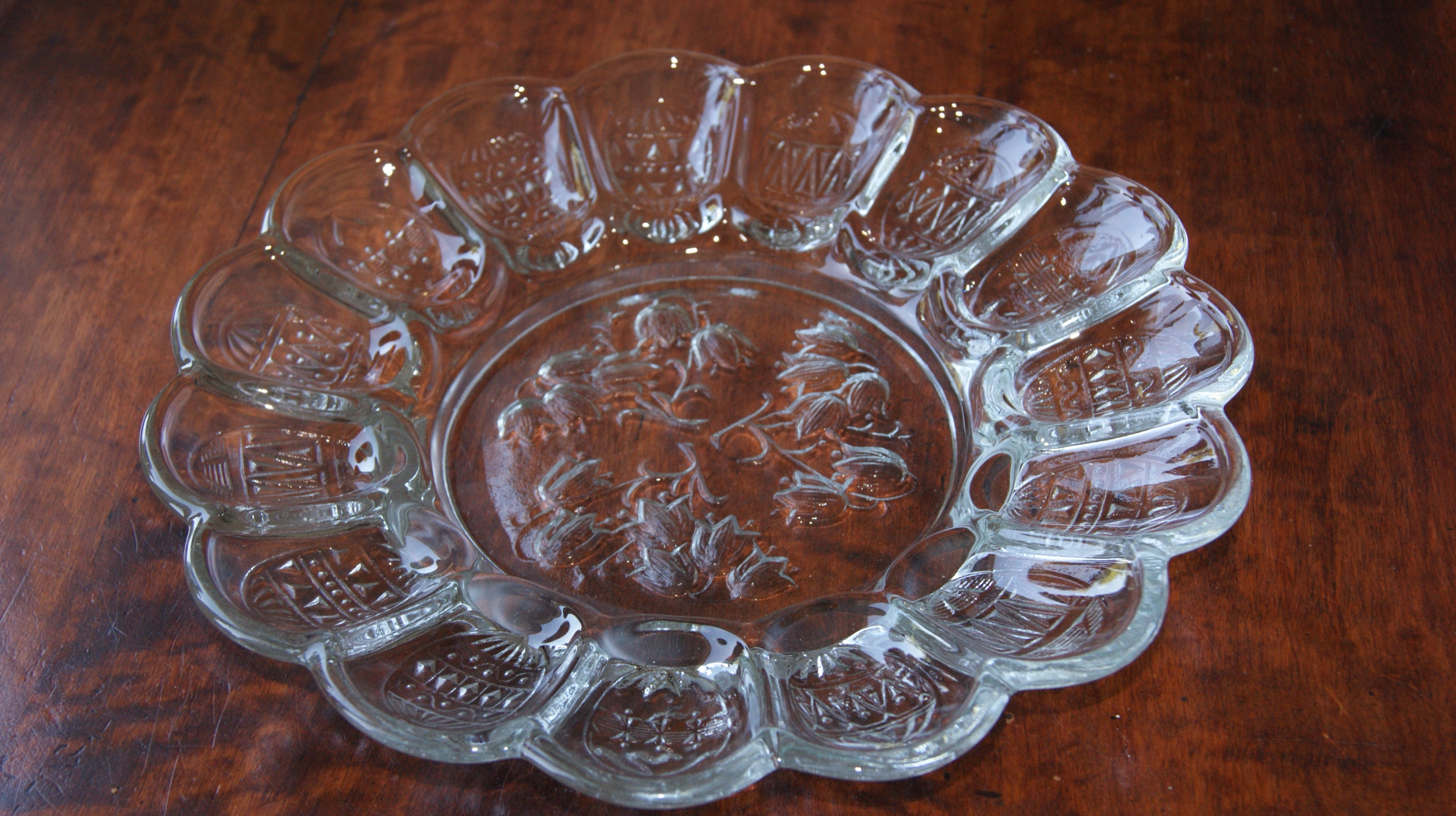 Talerz do jajek pięknie zdobiony z lat 70-tych z Ząbkowic projekt Eryka Trzewik-Drost stan bardzo dobry średnica 29 cm wys 4 cm