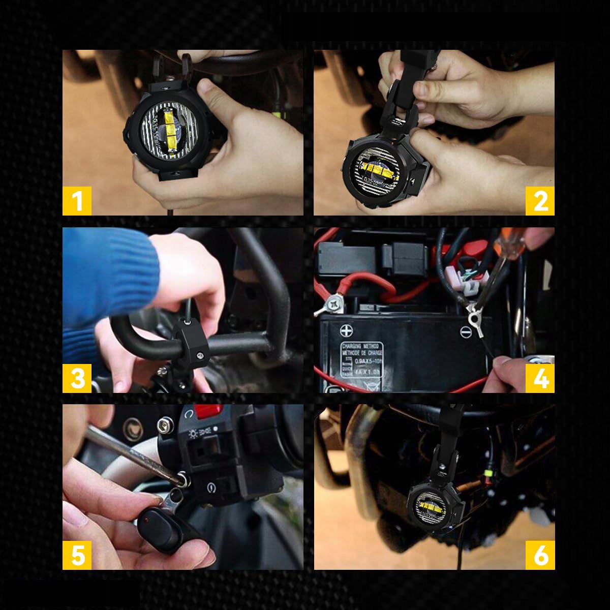W lampach zostały zastosowane diody LED CREE z doskonałą optyką dającą dużo światła. Do zestawu dołączone jest kompletne okablowanie. Dodatkowe kostki z wolnym wypustem kablowym pozwalają na podłączenie do istniejącej instalacji halogenowej. Lampy są odporne na wstrząsy, zabrudzenia i wodę. Przystosowane są do montażu na rurze o średnicy 20-25mm. Uchwyty halogenów posiadają obrotowe i uchylne ramiona co pozwala na montaż w wielu miejscach i idealne ich ustawienie.
