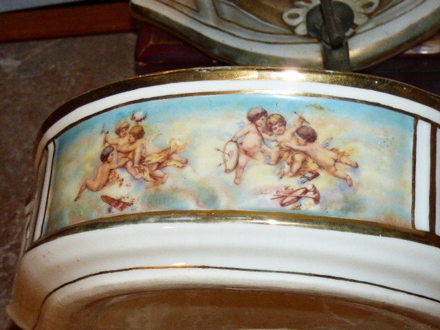 Francja I połowa XIX w wym cysterna 40 x 27 x 16 cm misa 22 x 29 x 9 cm stan bdb