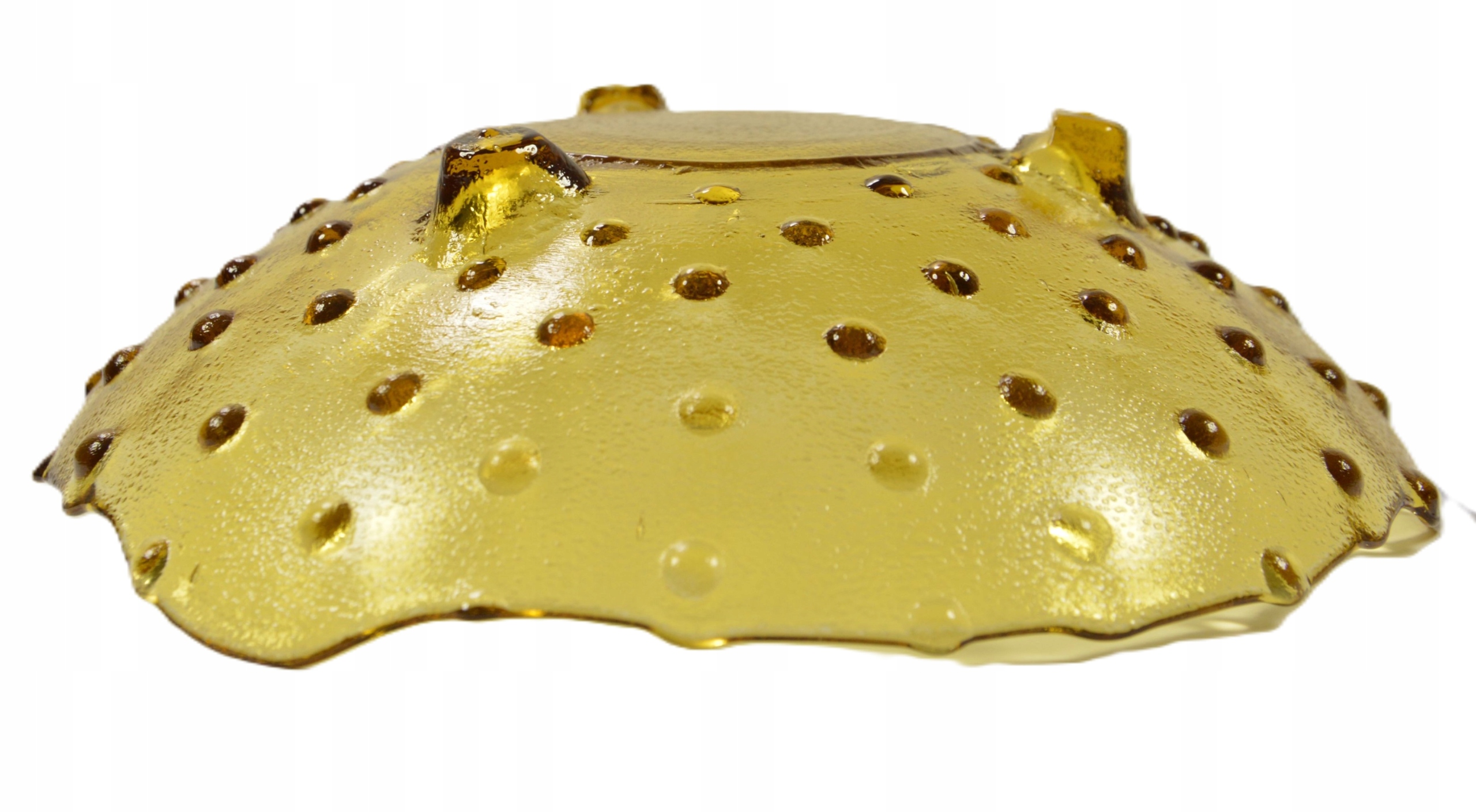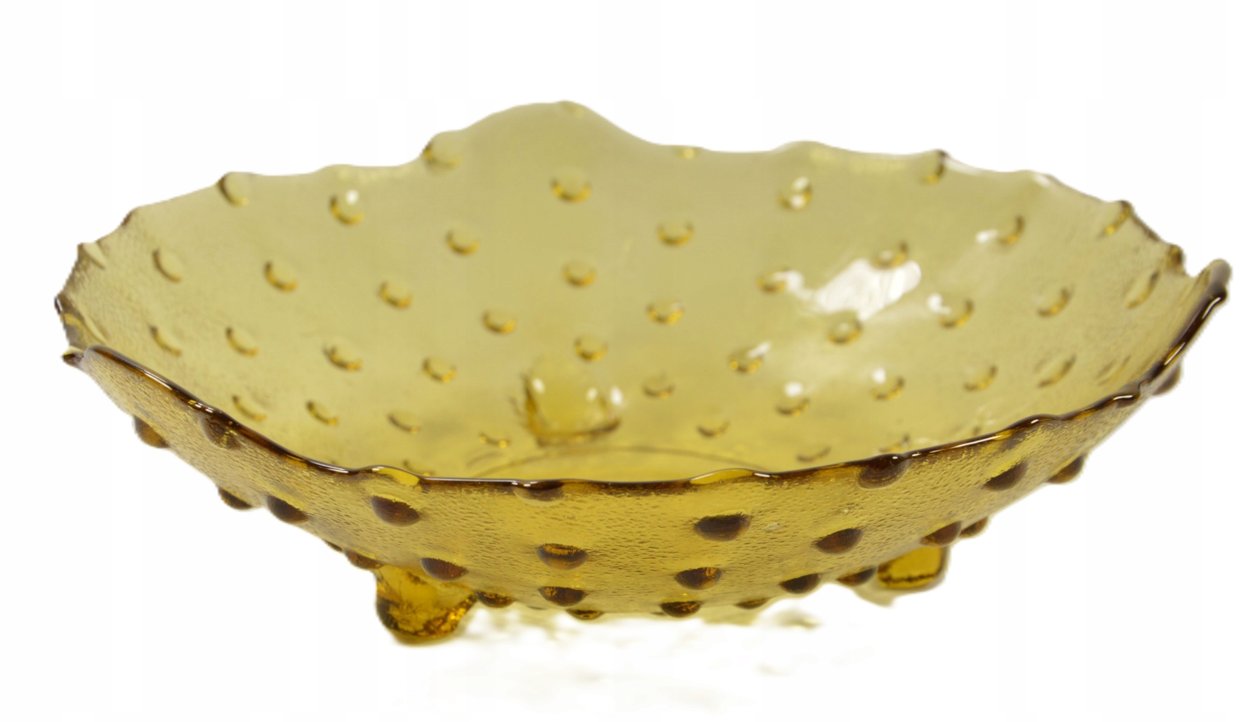Piękna stara misa - owocarka z ozdobnymi wypustkami. Szkło miodowe, bez uszkodzeń, doskonale się prezentuje.