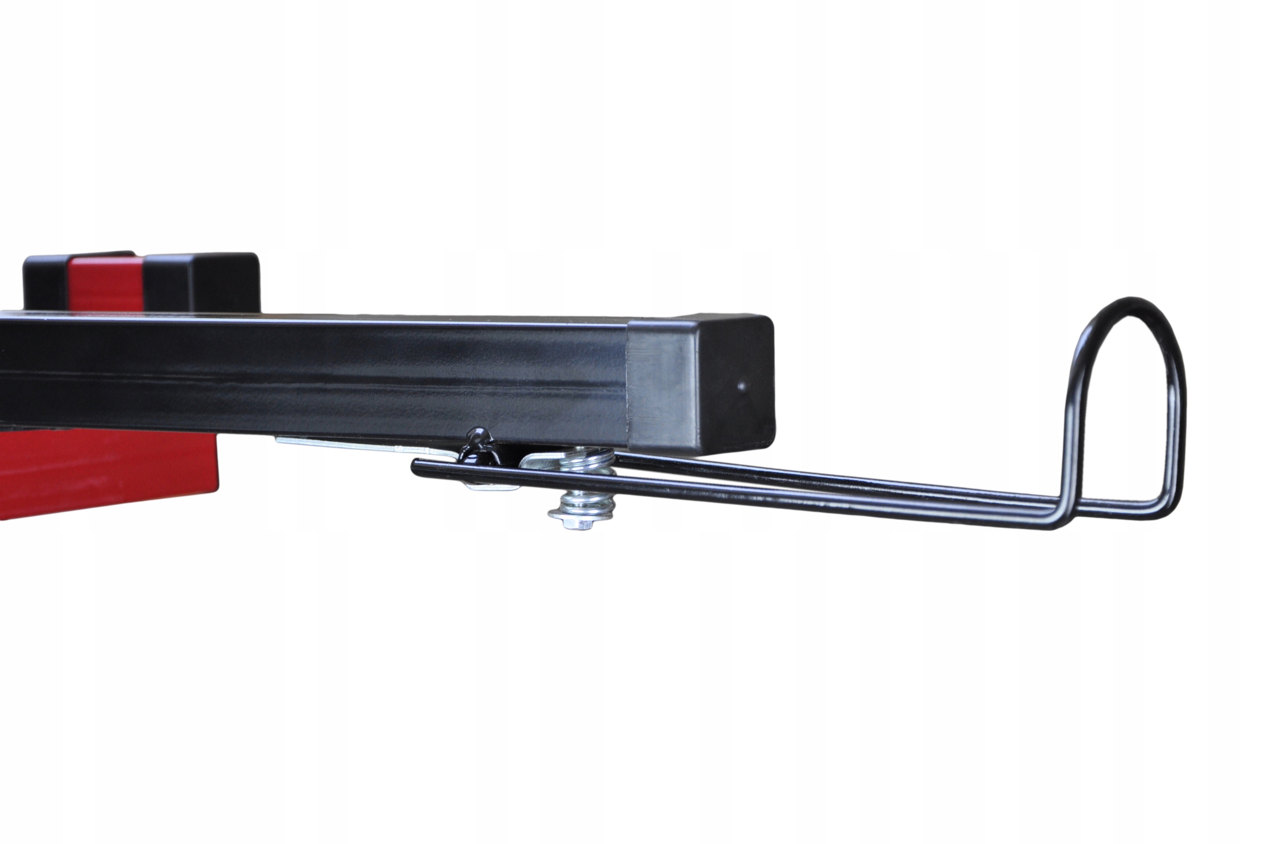 Dodatkowo podnośnik jest wyposażony w składane uchwyty blokujące płytę i zapobiegające jej zsunięciu się, co jest szczególnie istotne podczas pracy przy skosach.