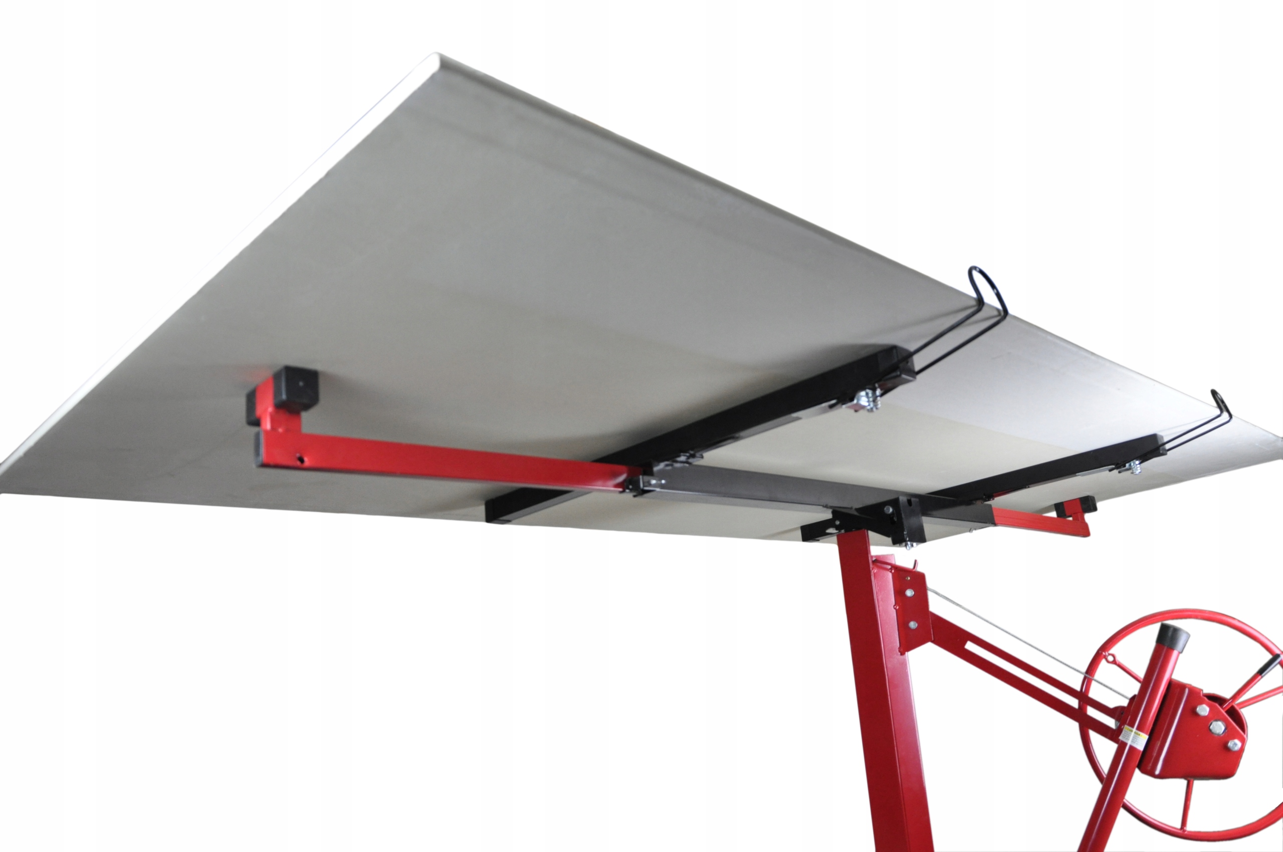 Niezwykle przydatne urządzenie podczas prac wykończeniowo-remontowych. Umożliwia jednej osobie podniesienie i odpowiednie ustawienie płyt kartonowo-gipsowych lub OSB o wadze aż 68kg i wymiarach 128x488cm, bez potrzeby angażowania dodatkowych osób.