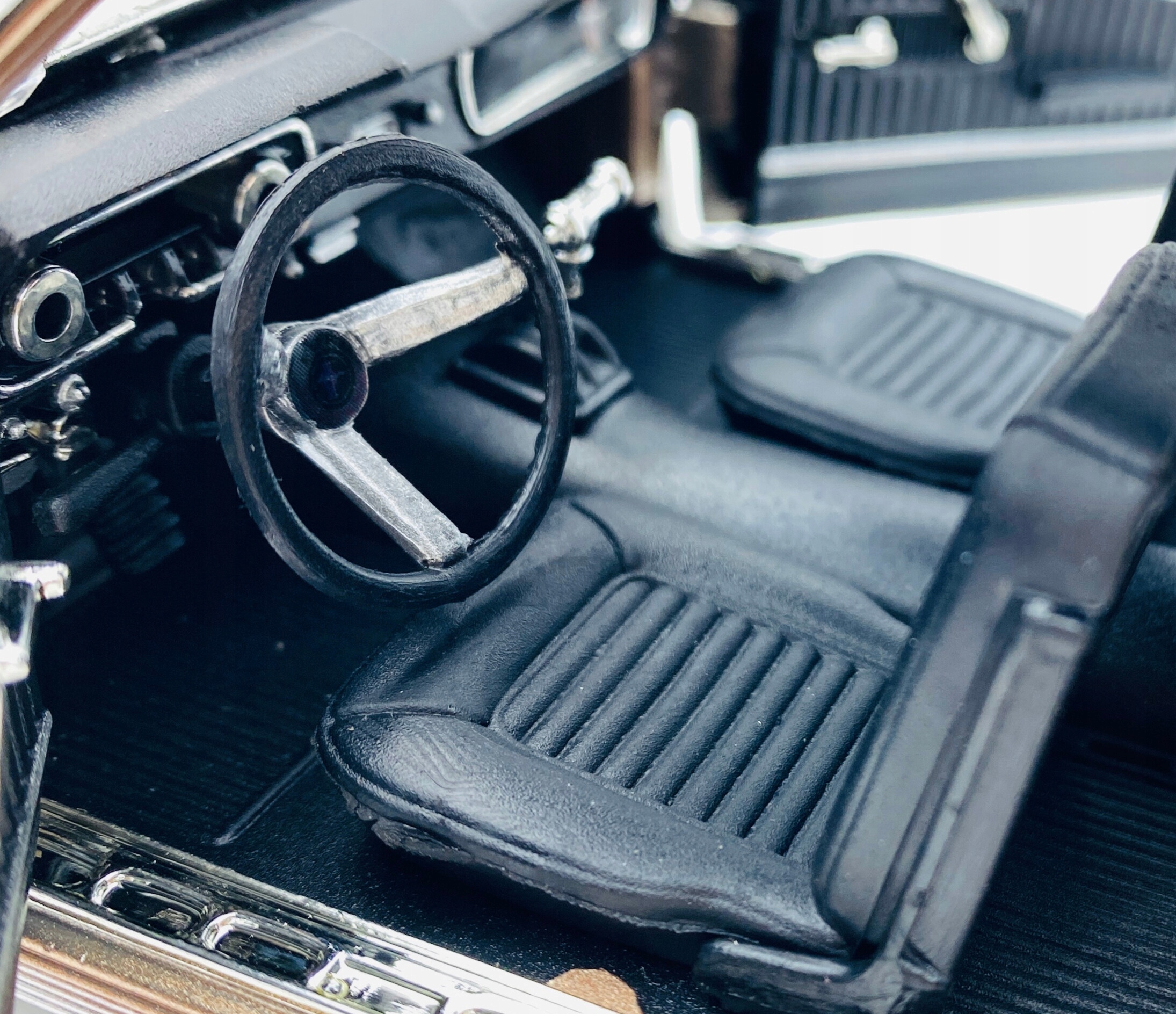 Model posiada działający układ kierowniczy – skrętne koła i kierownicę.