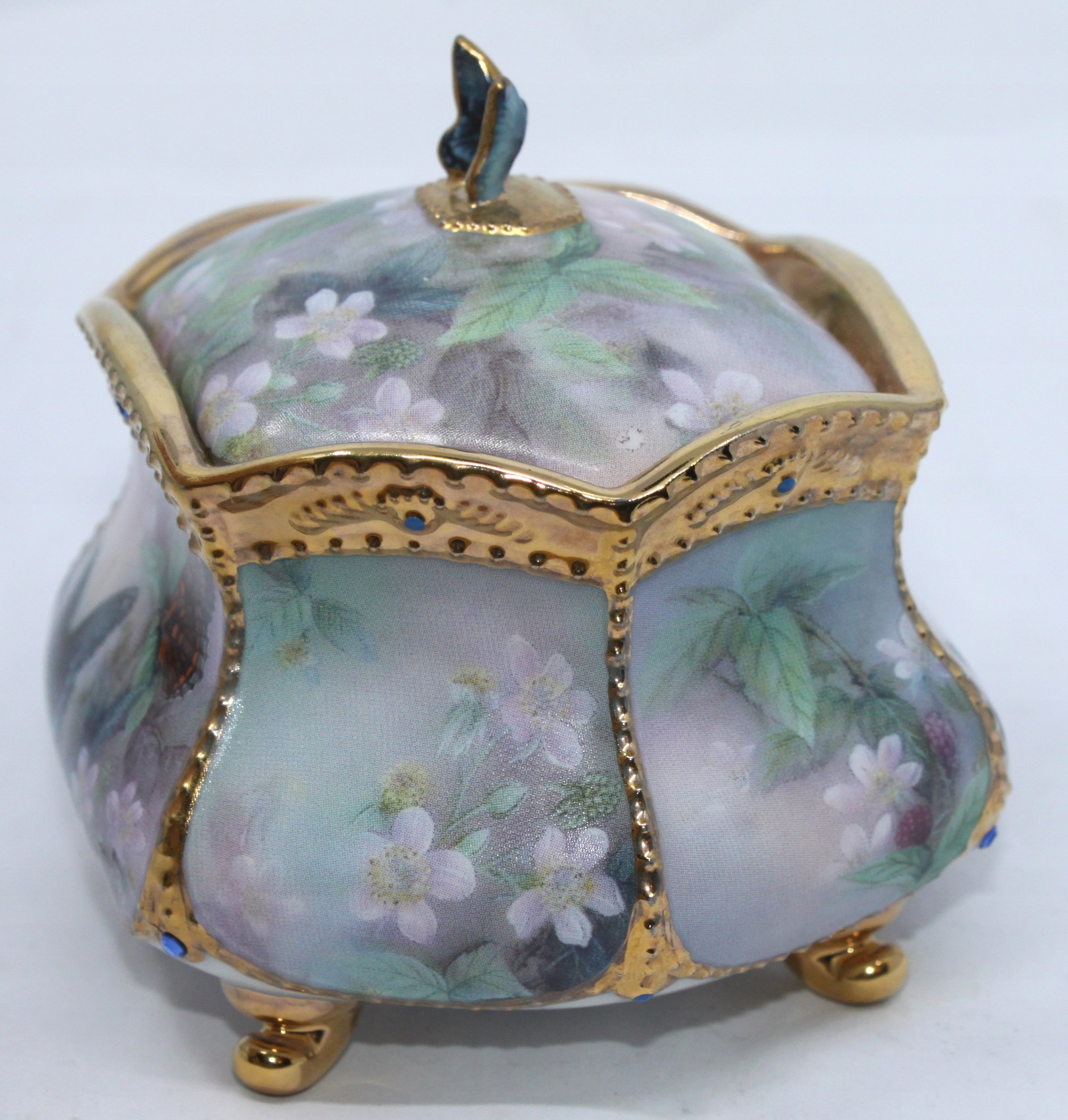 PUZDRO POZYTYWKA WYKONANE Z PORCELANY ,ZDOBIONE CYRKONIAMI 22 KARATOWYM ZŁOTEM,SYGNOWANE ZNAKIEM WYTWÓRNI, NUMEROWANE.\