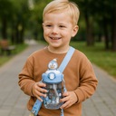 Butelka została wyposażona w praktyczny pasek, zaprojektowany z myślą o komforcie najmłodszych użytkowników. Pasek ułatwia dzieciom samodzielne noszenie bidonu, zwiększając wygodę podczas drogi do szkoły, na spacerze czy w trakcie zajęć sportowych. Dzięki niemu bidon można bezpiecznie trzymać w dłoni lub zawiesić na plecaku, co ogranicza ryzyko upuszczenia i sprzyja codziennemu, regularnemu nawadnianiu.