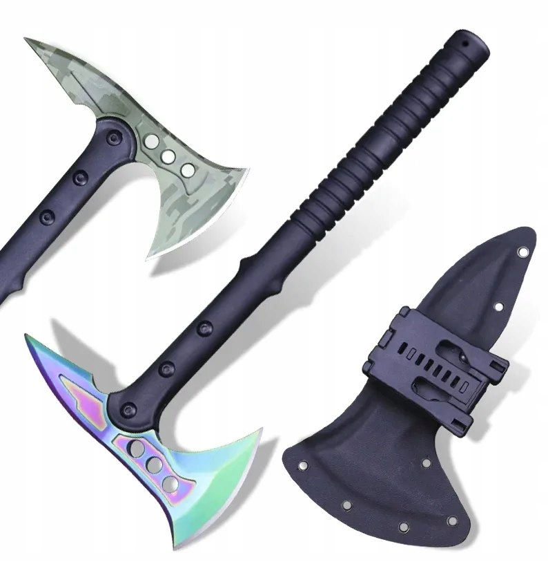 Do siekierki dołączone są dwie pochwy, polimerowa oraz materiałowa.