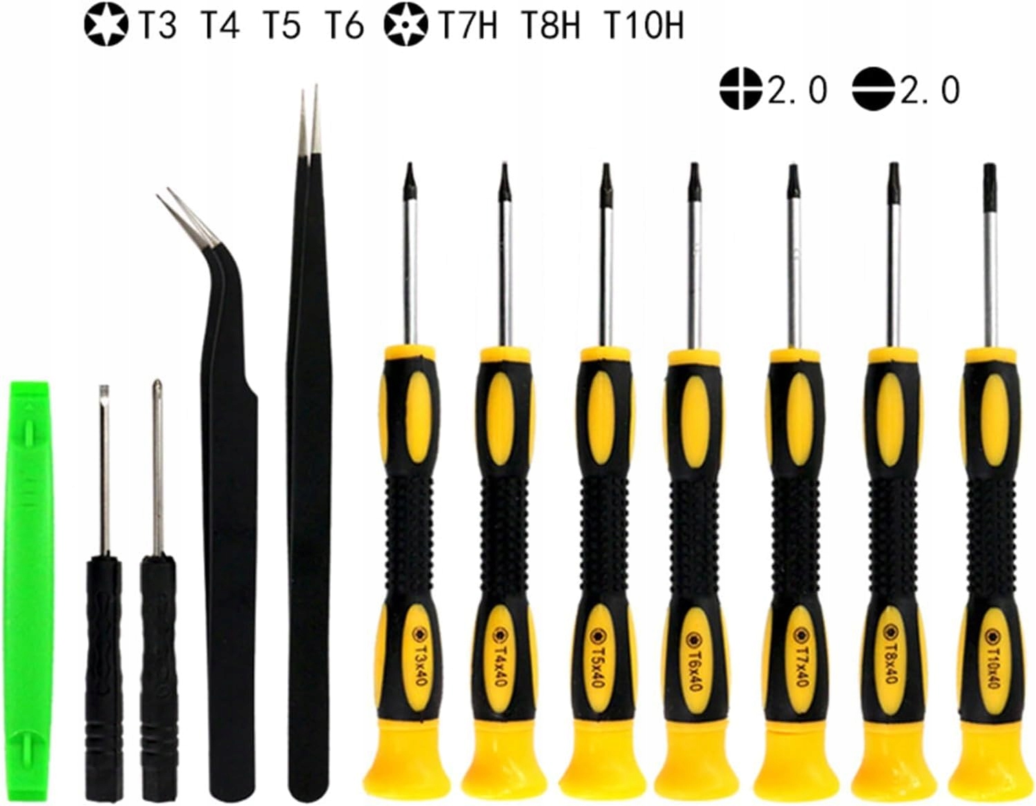 【12 w 1zestaw śrubokrętów Torx】 Ten zestaw narzędzi śrubokrętów gwiazdkowych zawiera 7 * Torx (T3 T4 T5 6 T7 T8h T10h), 2 pęsety ze stali nierdzewnej i 2 mini śrubokręty, 1 plastikowe narzędzie do otwierania dźwigni szeroko stosowane do naprawy smartfonów, komputerów Mac, komputerów i większości różnych rodzajów napraw elektronicznych.
