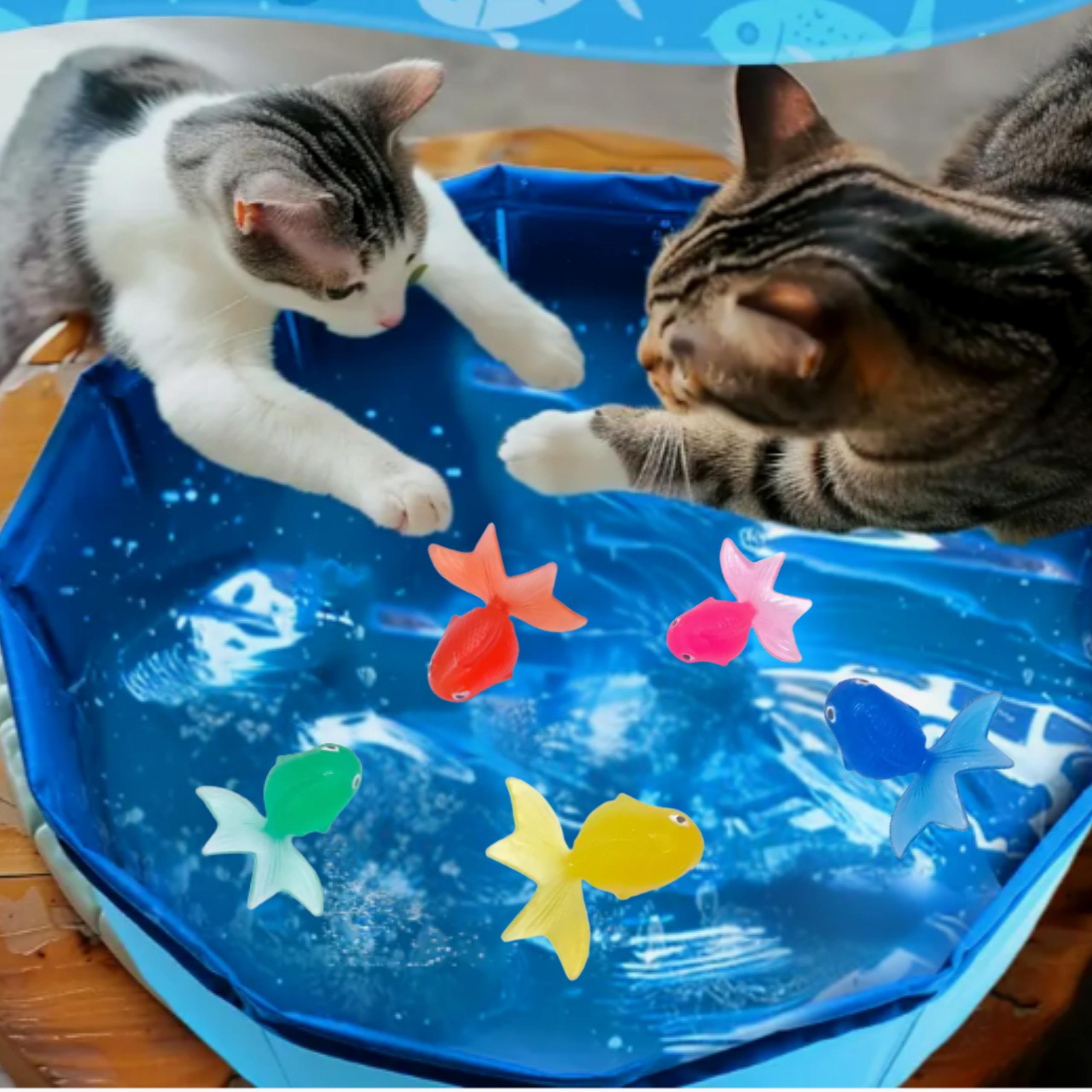 Dzięki pływającym zabawkom koty uczą się pływać same – poprzez zabawę, bez stresu, na własnych warunkach.